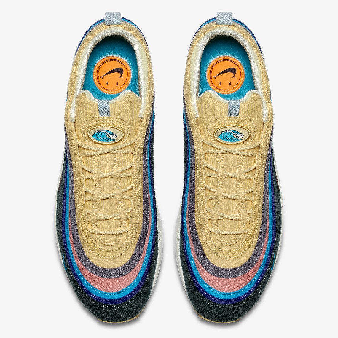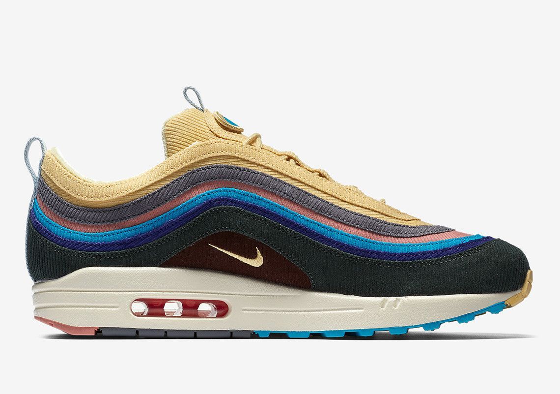 The sneakers is an hybrid between the Air Max 97, where the upper part of the sneaker was used, and the Air Max 1, where the midsole and the sole of it were used. As already known, the sneaker has an upper made entirely of Corduroy with different shades of colors, ranging from yellow to a dark green, with patches on the tongues. A design that is very reminiscent of the culture of the '80s, which Sean is very fascinated.