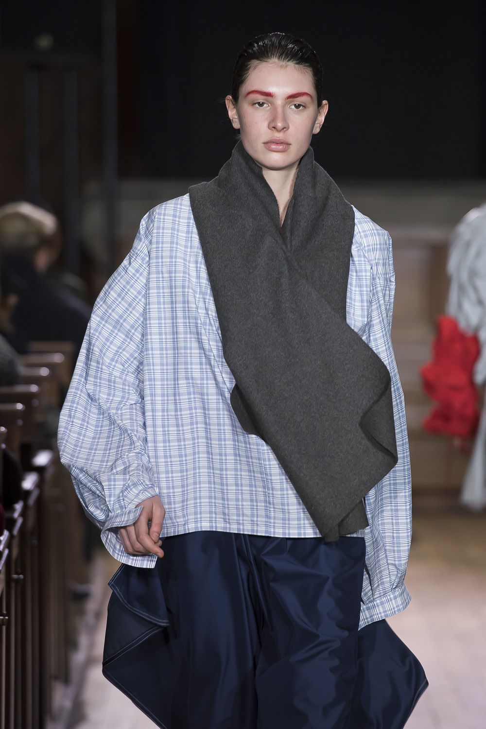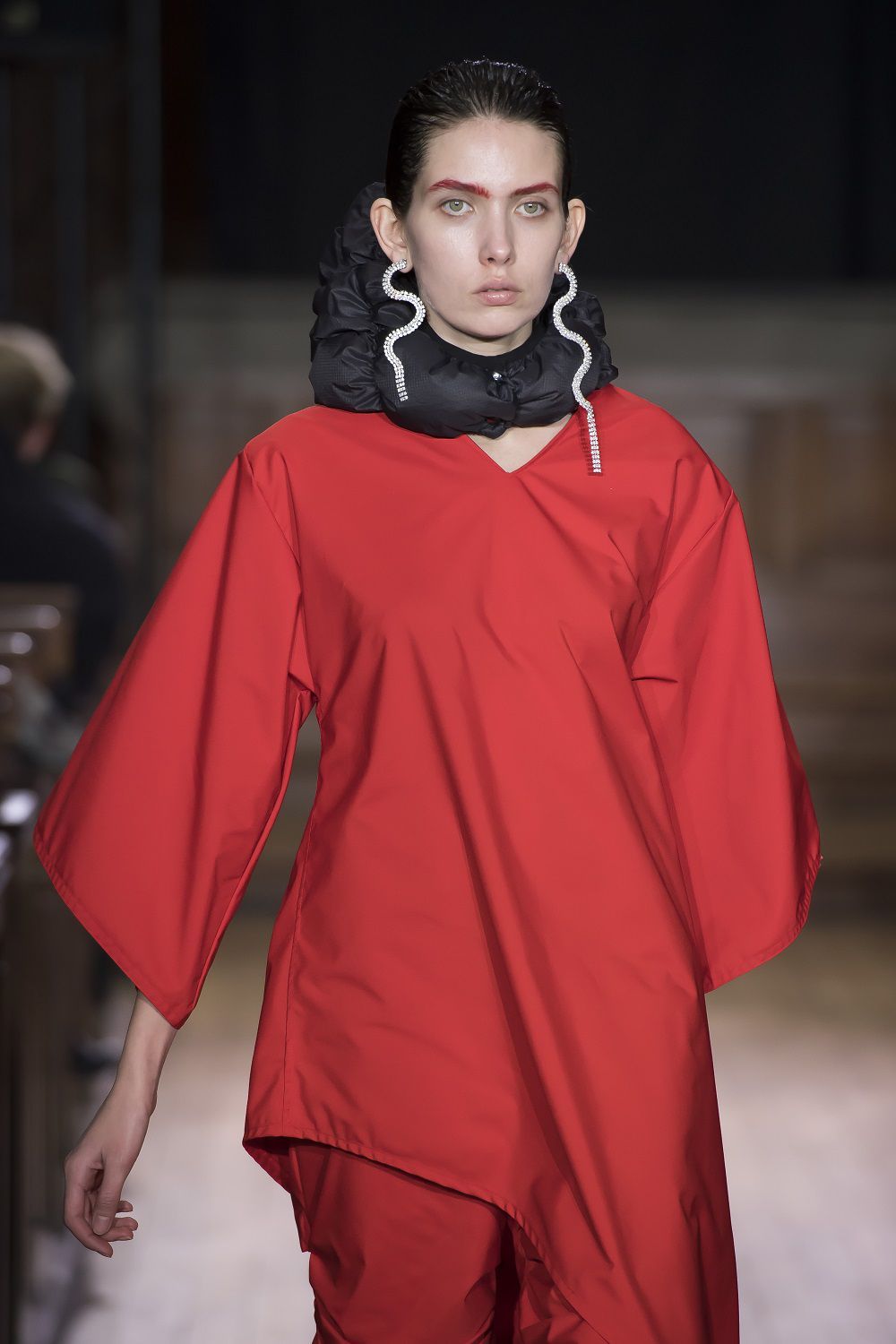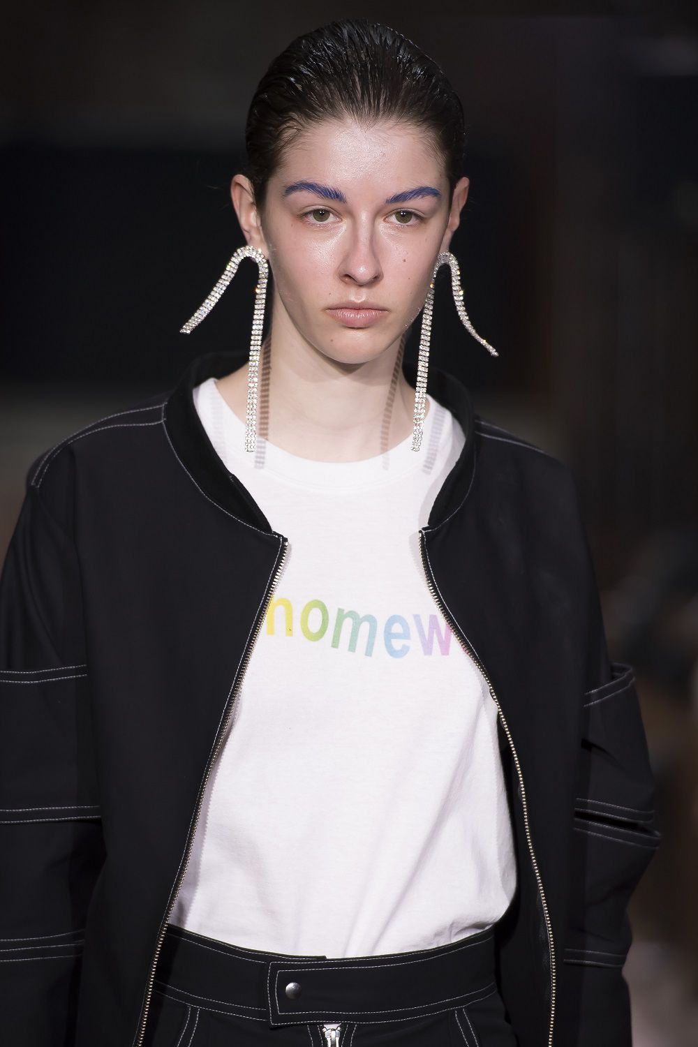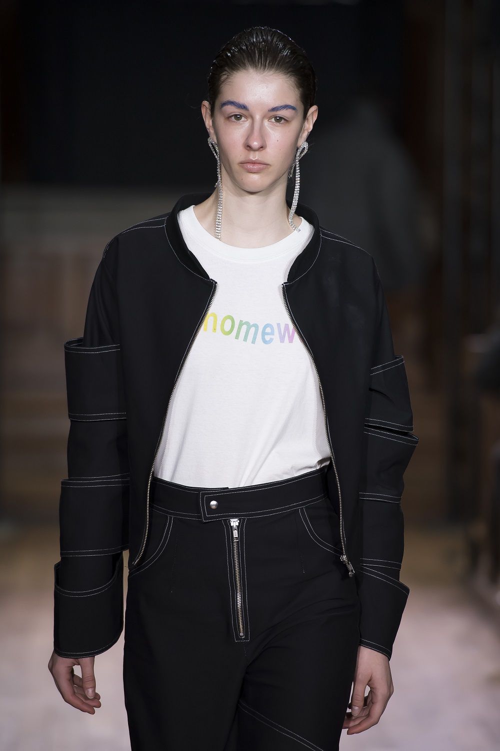 Now, during the last Paris Fashion Week, the young couple presented the latest FW18 collection that, in its aesthetically clean garments, has managed to convey what we need today more than ever: decision. The shapes of the garments, although over, are precise and in harmony with each other, combined with extreme care and made even more precious by knots created with the fabric, by a curled effect that dominates the shirts or tunics. The zip, the visible stitching, the writing Afterhomewor(Paris) that returns to the t-shirts, everything is designed with strategy and, although the garments are classic, the details make the difference.