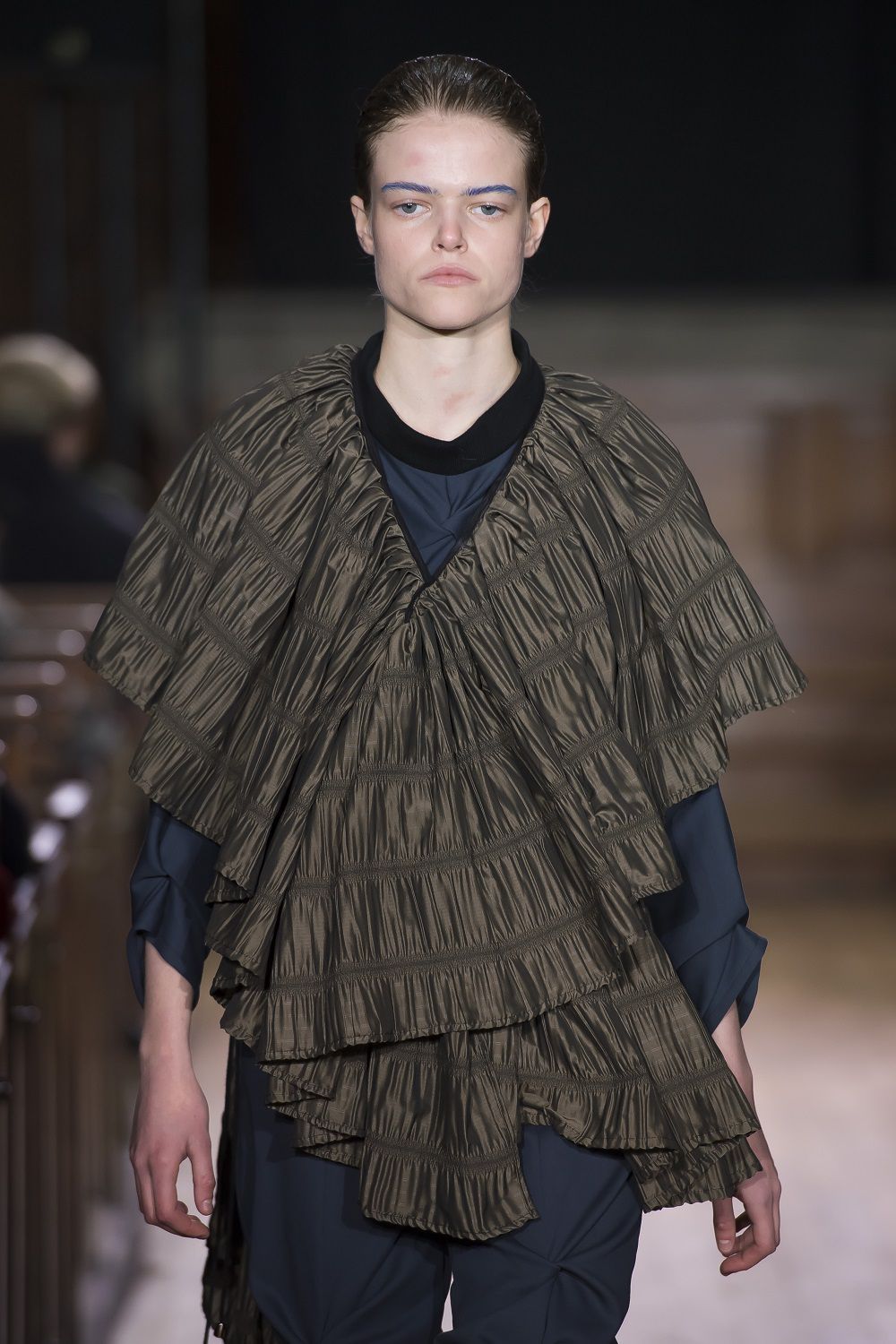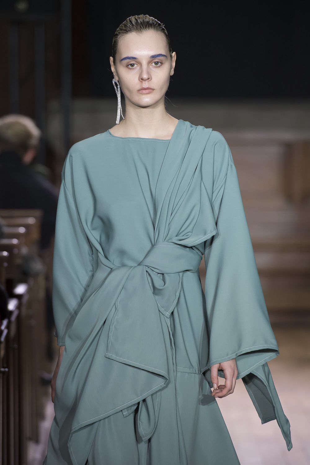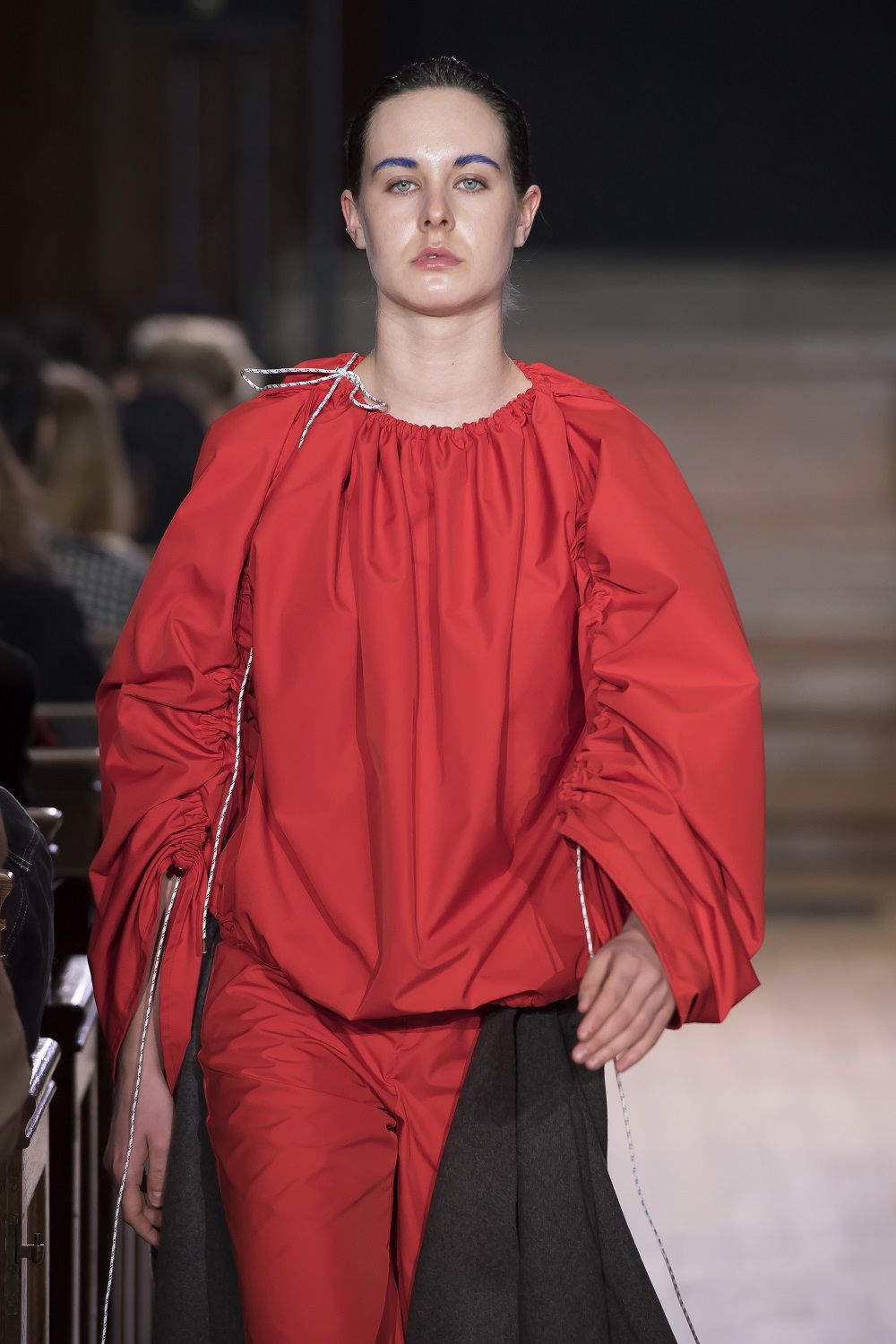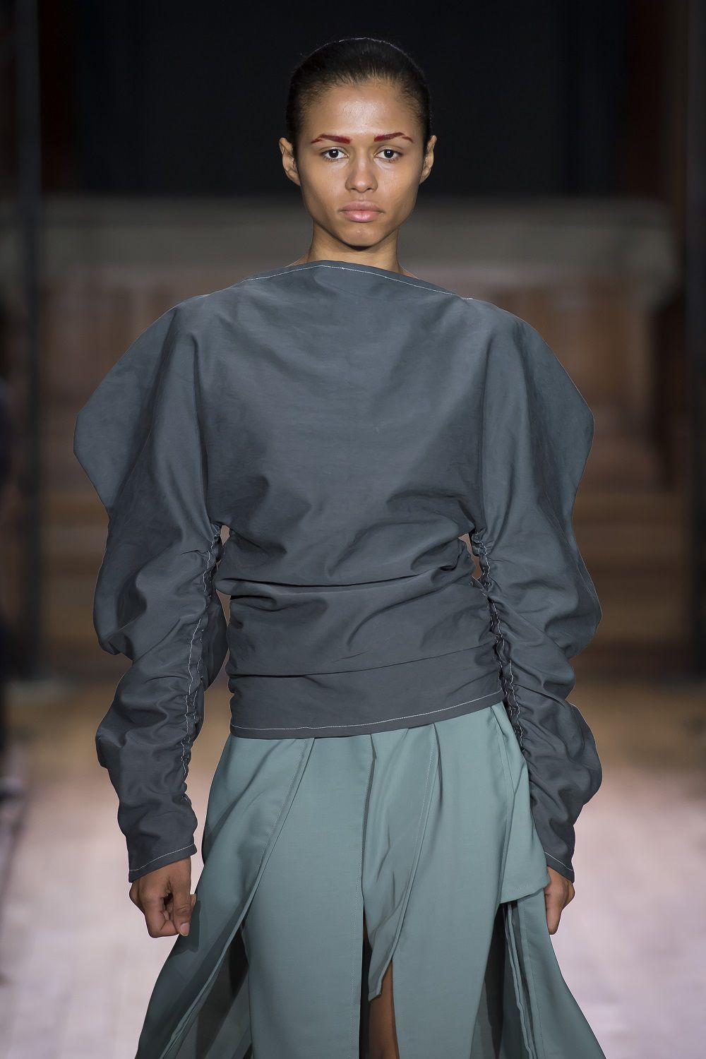 Now, during the last Paris Fashion Week, the young couple presented the latest FW18 collection that, in its aesthetically clean garments, has managed to convey what we need today more than ever: decision. The shapes of the garments, although over, are precise and in harmony with each other, combined with extreme care and made even more precious by knots created with the fabric, by a curled effect that dominates the shirts or tunics. The zip, the visible stitching, the writing Afterhomewor(Paris) that returns to the t-shirts, everything is designed with strategy and, although the garments are classic, the details make the difference.