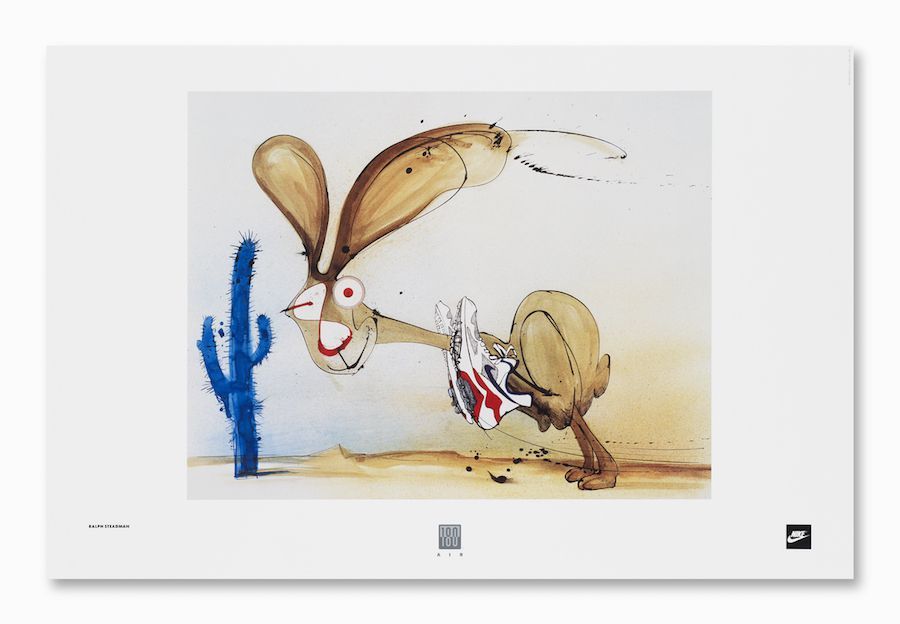 The Nike Air Max 180 with Steadman, the artist who created the artwork for the cover of the album by Travis Scott and Quavo, Huncho Jack, sports a rabbit-inspired suede in his work of art.
