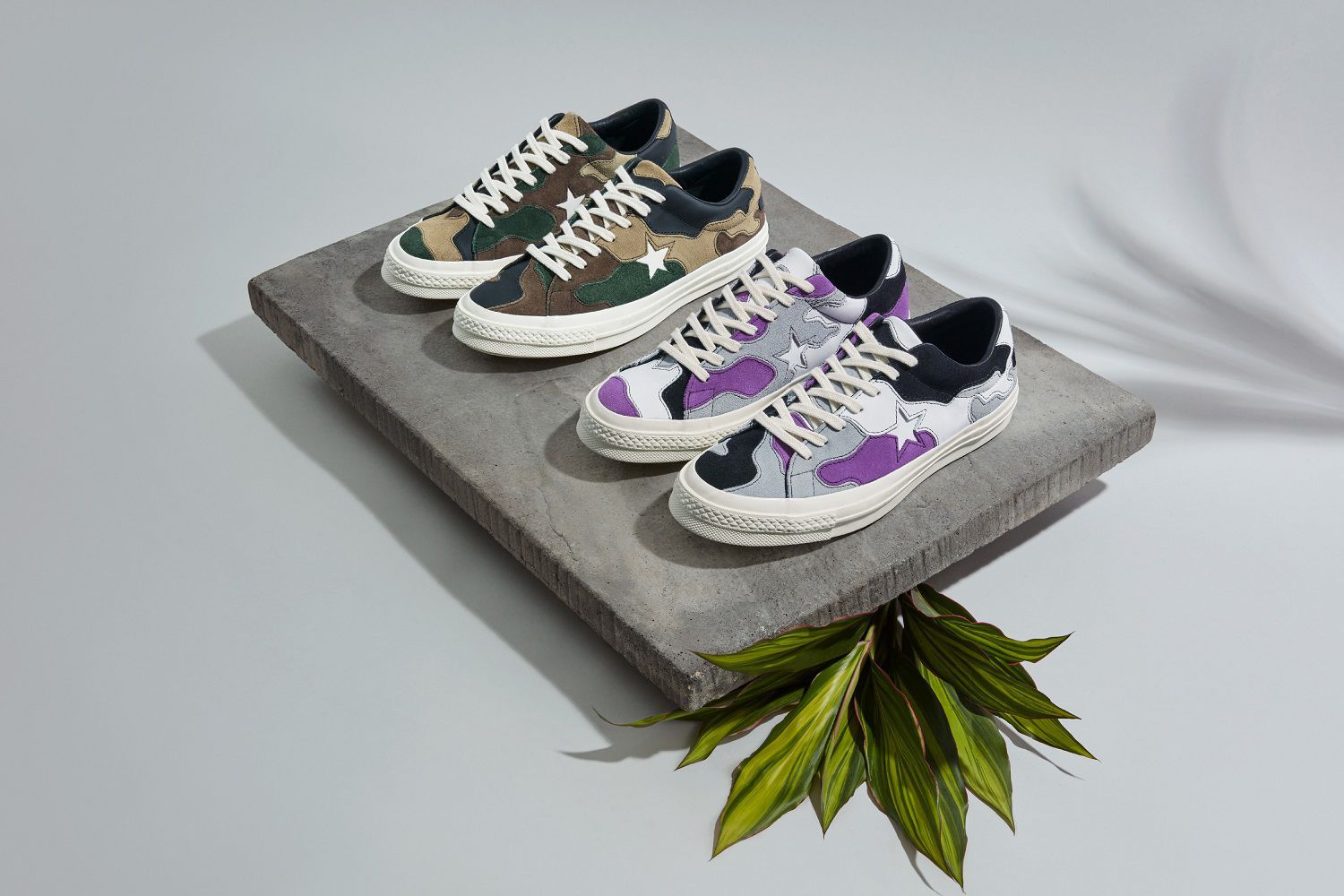 The theme of the entire collection is the camo motif that, proposing itself in the purple ("deep lavender" palette) and military green ("canteen" palette) variants, envelops the One Star, giving it a contemporary touch without ever obscuring its traditional essence.