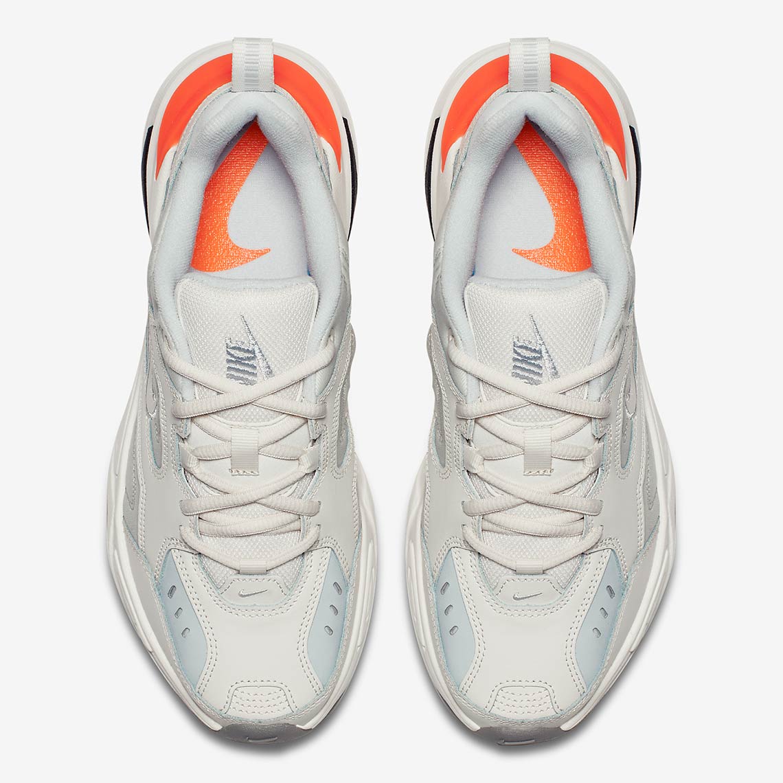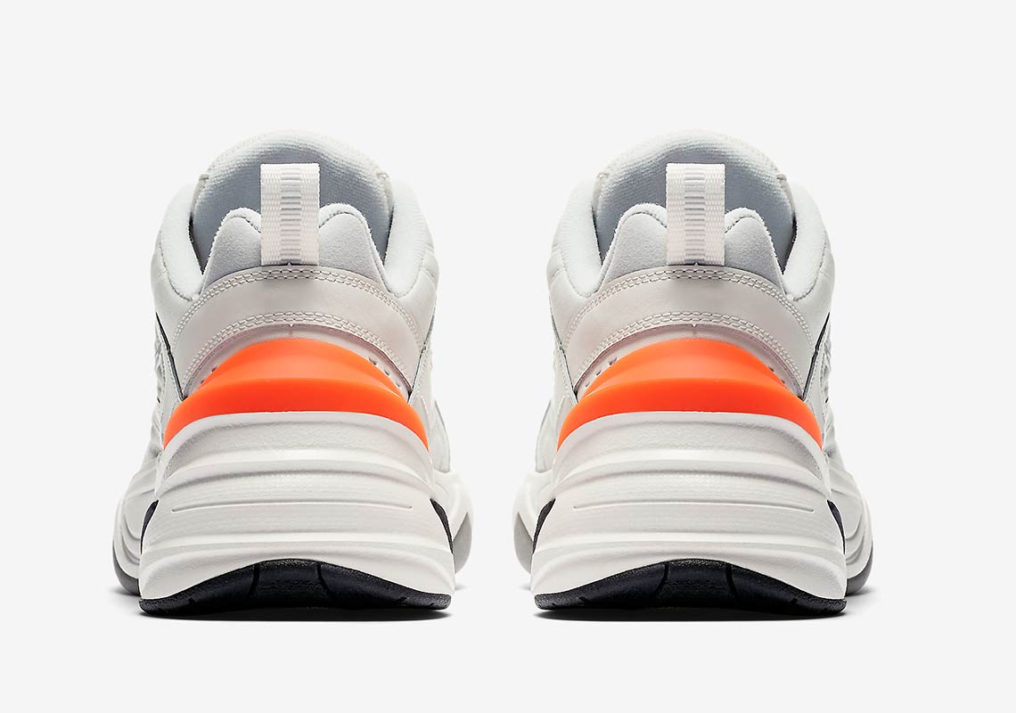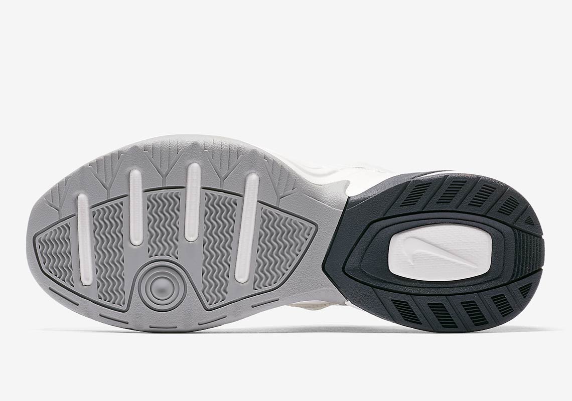 With a classic daddy look and chunky sole, the silhouette take inspiration from the Nike Air Monarch IV. The new shoe feature "Phantom" and "Oil" leather upper with an “Hyper Crimson” detail on the back and grey sole.