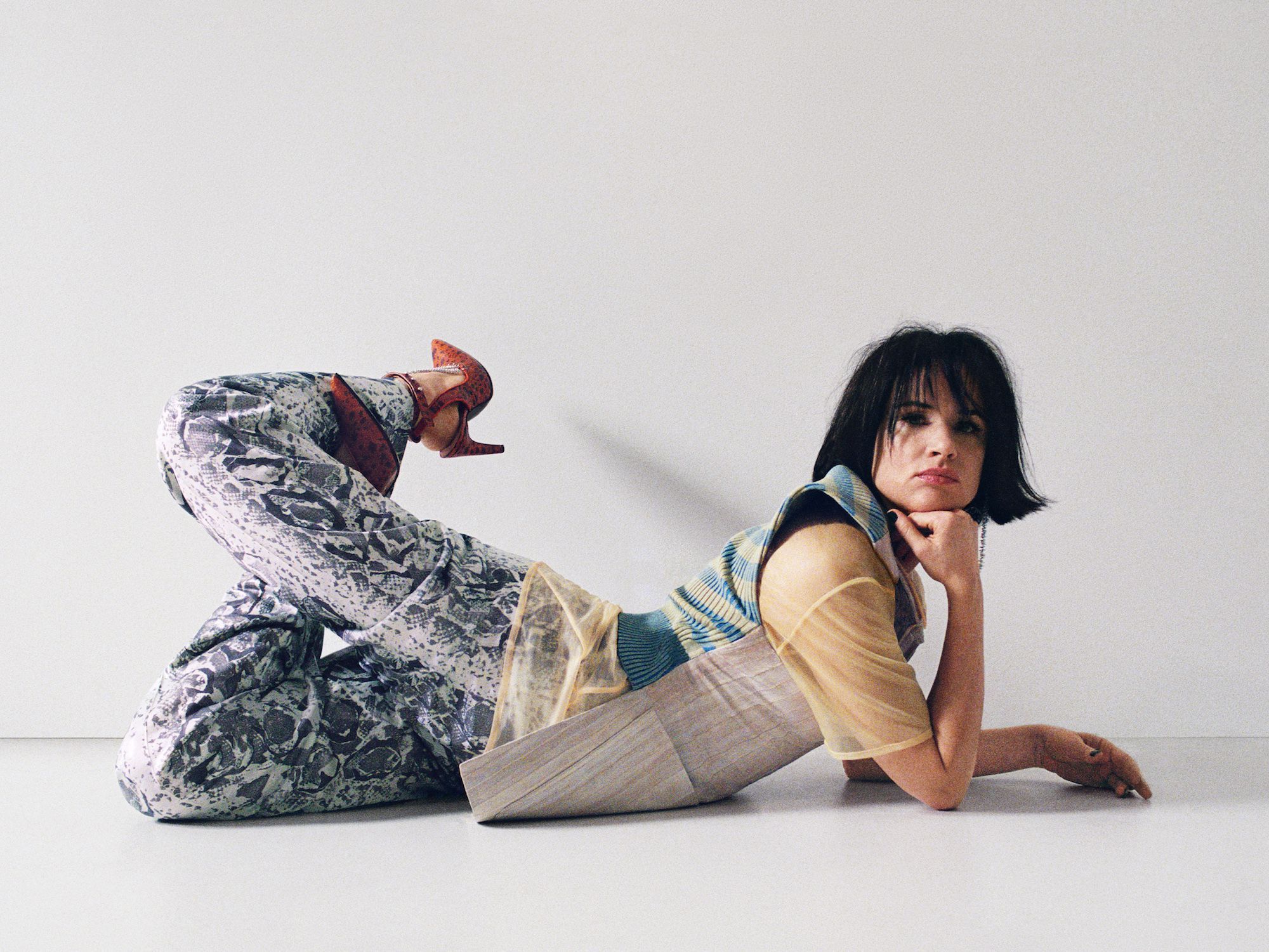 Juliette Lewis, her expressive face and her lithe body are the strong point of Acne Studios.