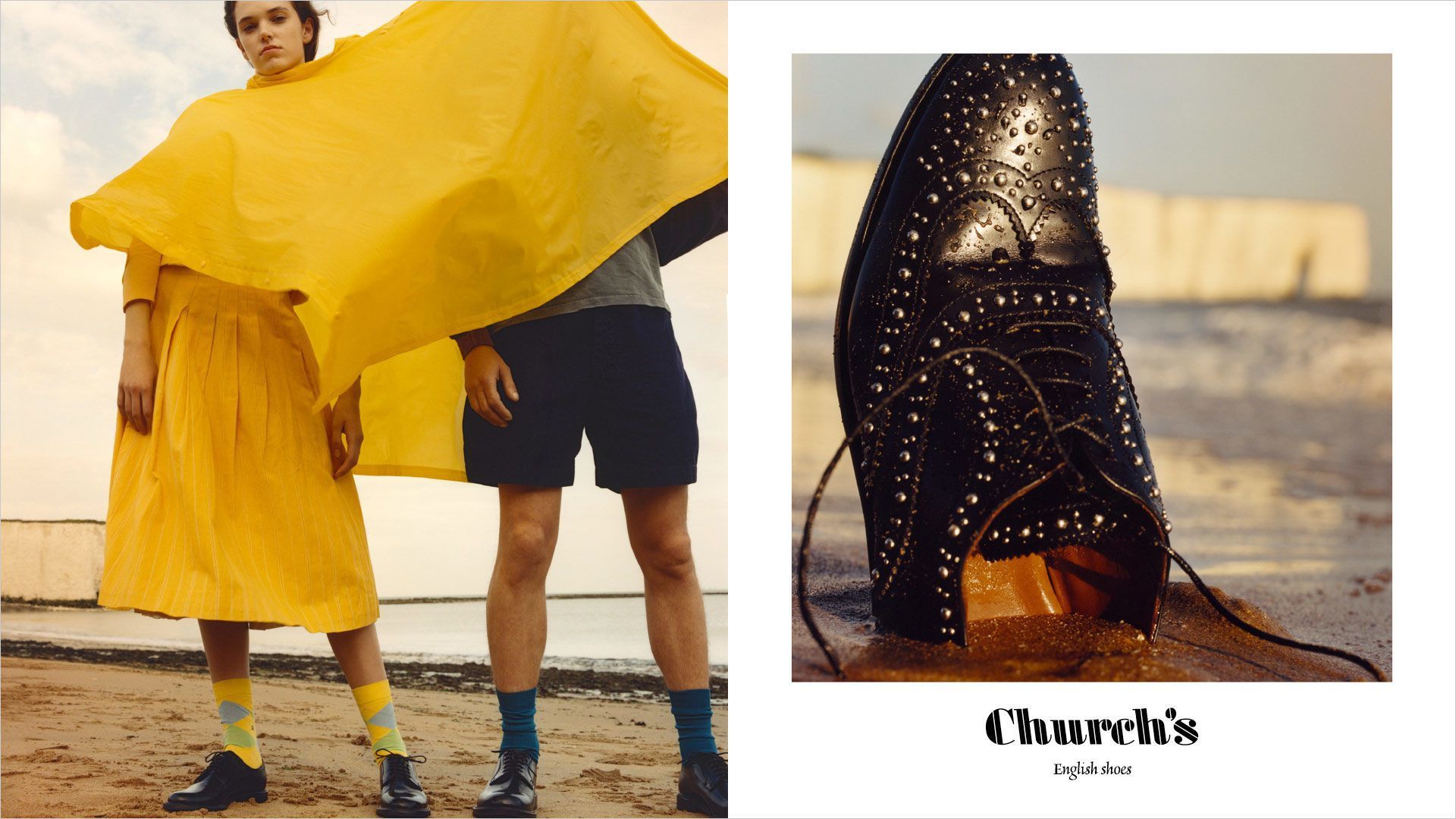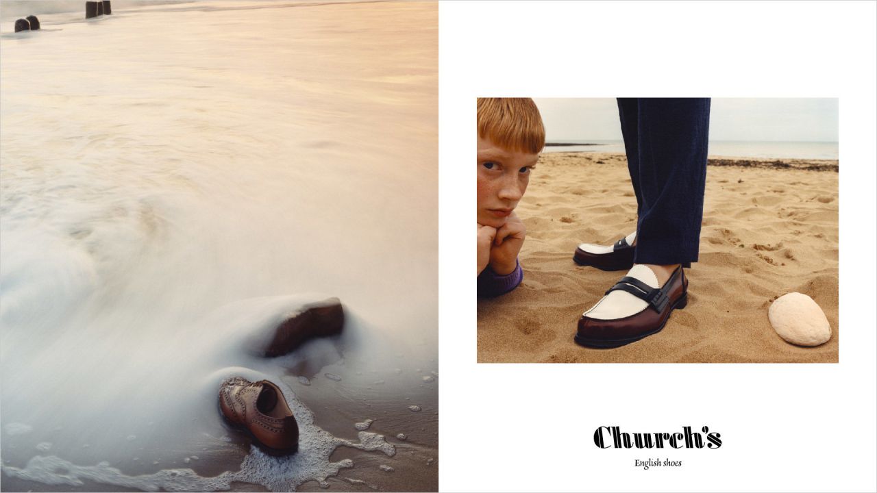 For his new advertising campaign, Church's chose the ironic objective of the photographer Jamie Hawkesworth and the white cliffs of Dover, as a backdrop to his irreverent shots with a dreamlike mood.