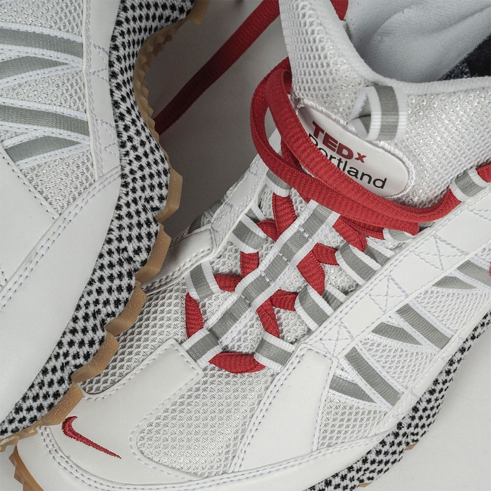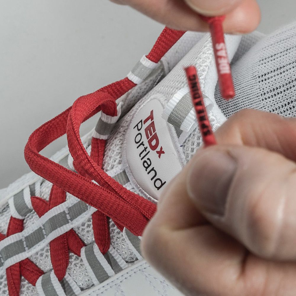 The exclusive sneaker features a white upper with grey and red details. The midsole is characterized by the Humara's iconic checkerboard print and a gum sole make this silhouette really clean. The shoe is full of “TEDx Portland” details as the logo on the tongue, while TED's “Ideas Worth Spreading” preaches from the heel. Nike left nothing to chance and also the aglets inspire, each tamped with “Spreading Ideas”.