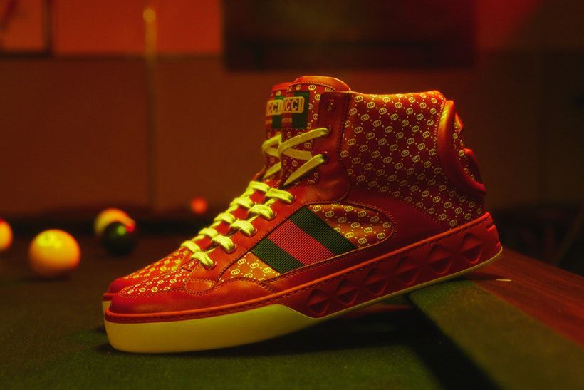 The result is a series of garments from the 80s/90s rap influences with fine materials such as leather, crystals, python and silk embroidery, with logo, Web detail and all-over monogram, with a vintage canon that recalls the American hustlers who conquered the neighborhoods of the Big Apple.