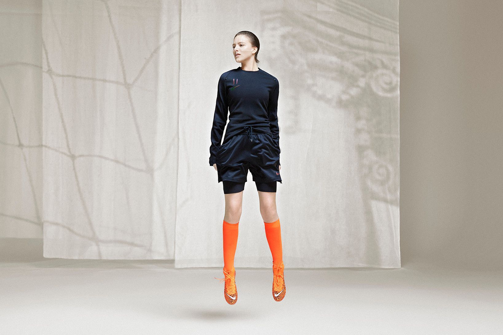 Kim Jones’s Nike collection drops on June 7. Titled Football Reimagined, the line is made up of pieces that will be as well suited for sportswear as higher fashion activities. The all-black wardrobe is Italian made and notably nonsynthetic. Jackets and jerseys feature heavily spun panels that run through the garments and give them extra structure and heft. Along with the clothes comes an already-released soccer boot and the newly revealed sneaker.