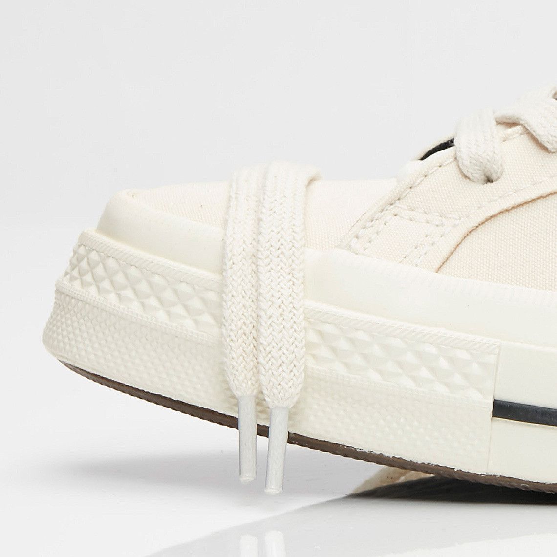 The "anti-aesthetic" approach to fashion by Gonzales turns the upper of the shoes upside down, putting the inside on the outside, creating two ultra-minimal sneakers in unbleached natural greige canvas.