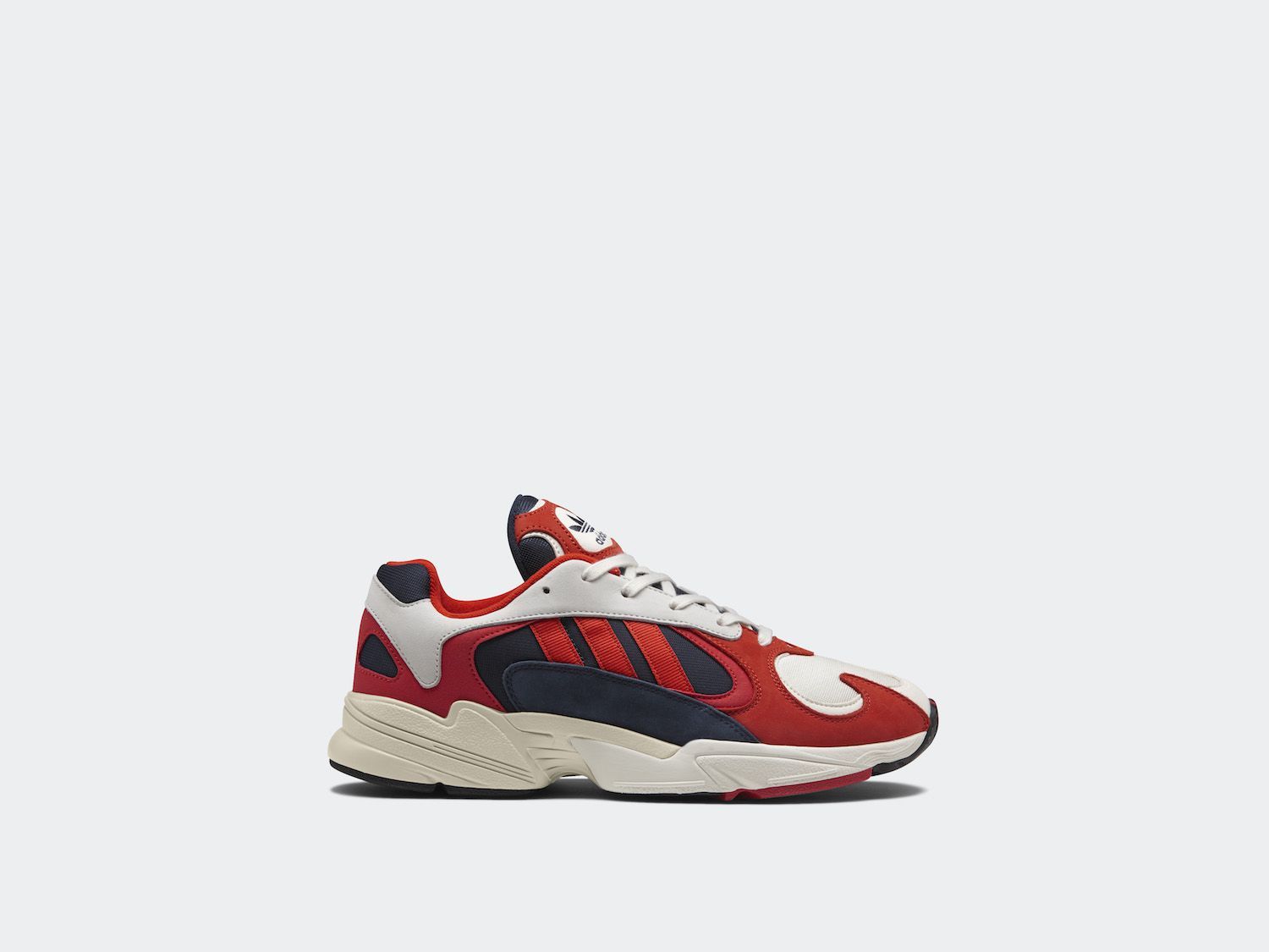 The Yung 1 sneaker takes on a classic Collegiate Navy/Red/White color inspired by a model running in the 90s from the adidas archive!