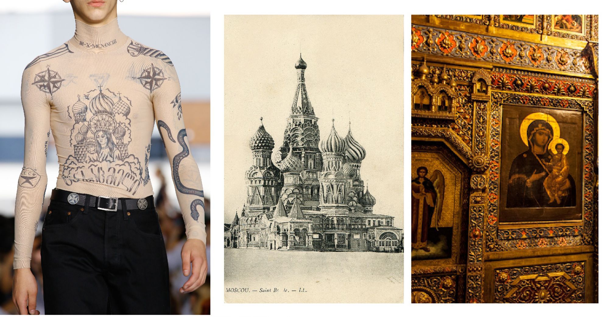 There is the second skin t-shirt with the Virgin Mary and Child in front of the Saint Basil's Cathedral, hooded sweatshirts with Cyrillic lettering and anoraks made with the colors of the national flags of Russia, Turkey, Ukraine, United States and of course, Georgia.