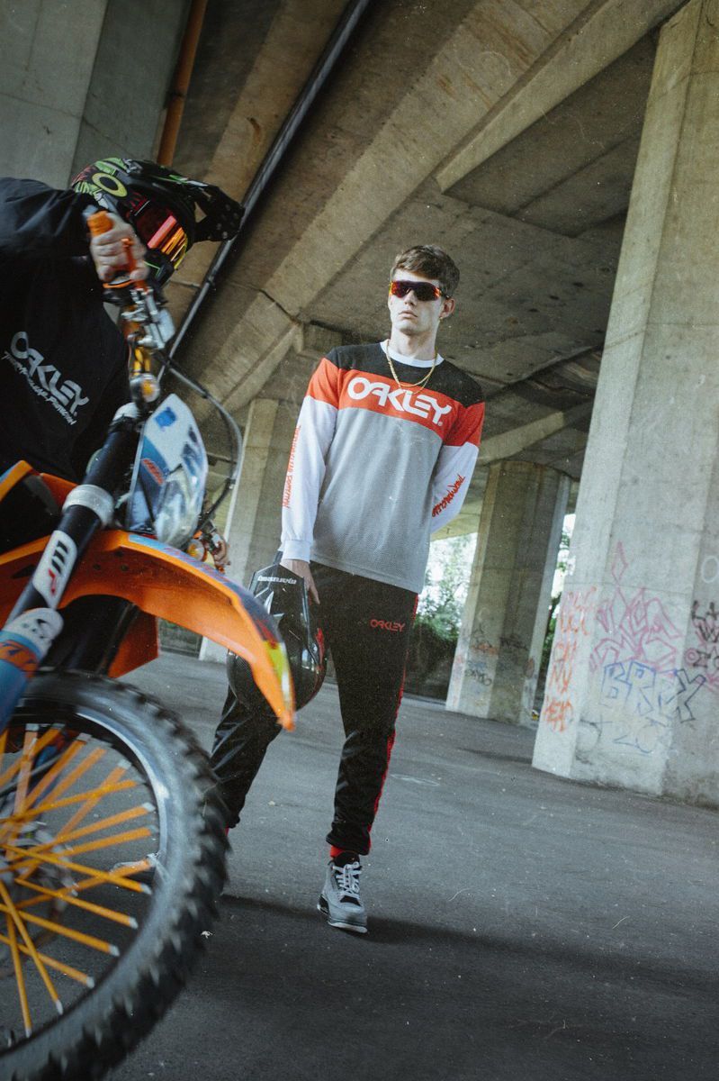 The collection includes t-shirts, fleece, pants, outerwear, and accessories, including two limited edition colors of Oakley’s iconic Mumbo frame, which were the frames that brought the extreme sport eyewear aesthetic into the mainstream from sports to leisure, to popular culture, Oakley changed to world we see, and the way we see it.