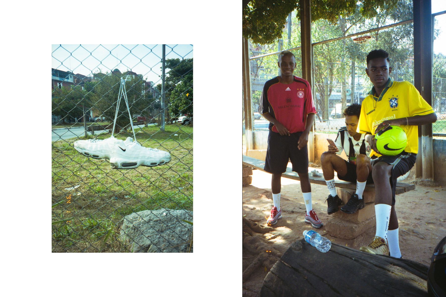 The styling and photography were inspired by our own experiences, where we live and how we live in Brazil, with a glimpse of the outside fashion world. We try to capture all the essence and energy that exists here, the realness of the people that really live here. The editorial was a great success because of the good reputation of Brazil in being the country of football and really is the strongest culture here so everything that has happened was really natural.