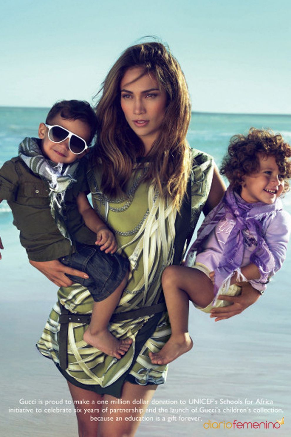 In 2010 Jennifer Lopez and her two-year-old twins, Max and Emme, are the protagonists of the first Gucci Kids advertising campaign.