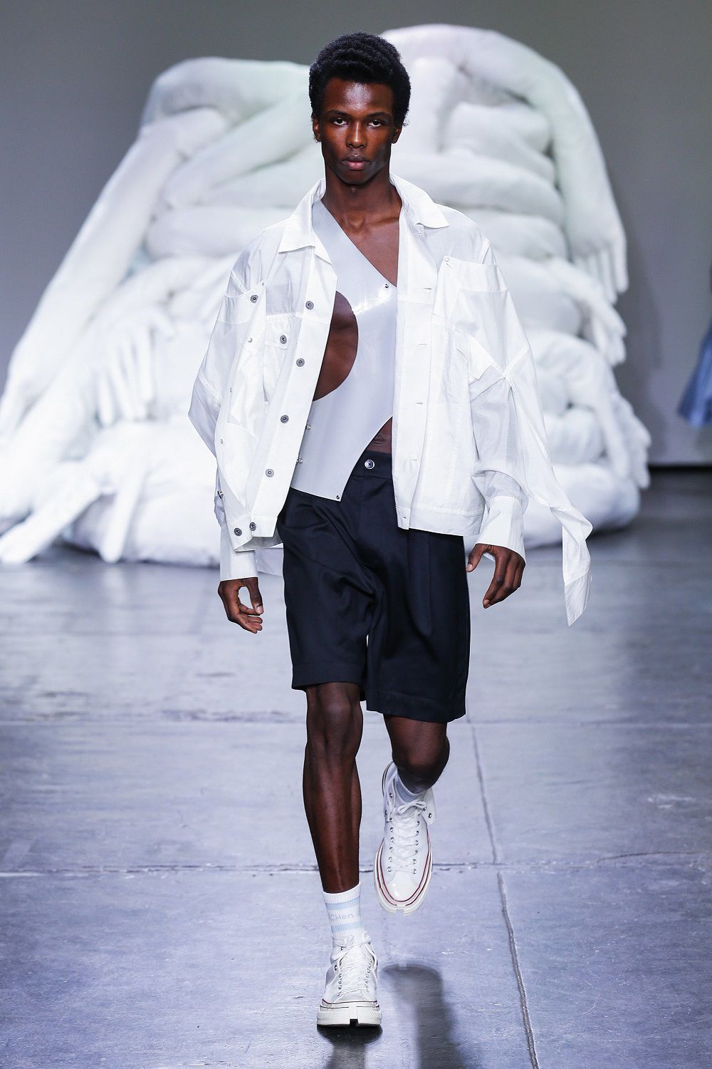 So why do we have to be curious about Feng Chen Wang? Because she is following very precise steps after having made an AJ 1 for the FW18 she has now gone over to Converse, because her brand transforms fashion into an experience and it dares, exaggerates, upsets but without mistakes. Does that remind you of someone? Starts with V...