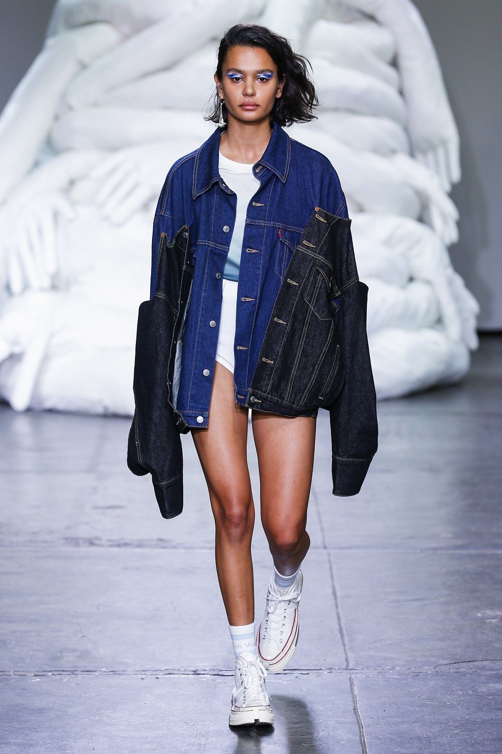 The young London-based designer finalist of the 2017 LVMH Prize Feng Chen Wang, yesterday presented her latest SS19 collection in New York proving to have the right cards to challenge the big designers at their own game. Mixing styles, daring colors and letting unexpected clothes onto the catwalk: this is the wild card that is Feng Chen Wang. But that it was not enough. What will make everyone talk about this Spring / Summer collection are the garments that in their recognizability have witnessed how nowadays mixing different fashion ideas is the right strategy to triumph: we are talking about Converse and Levi's (x Feng Chen Wang) items.