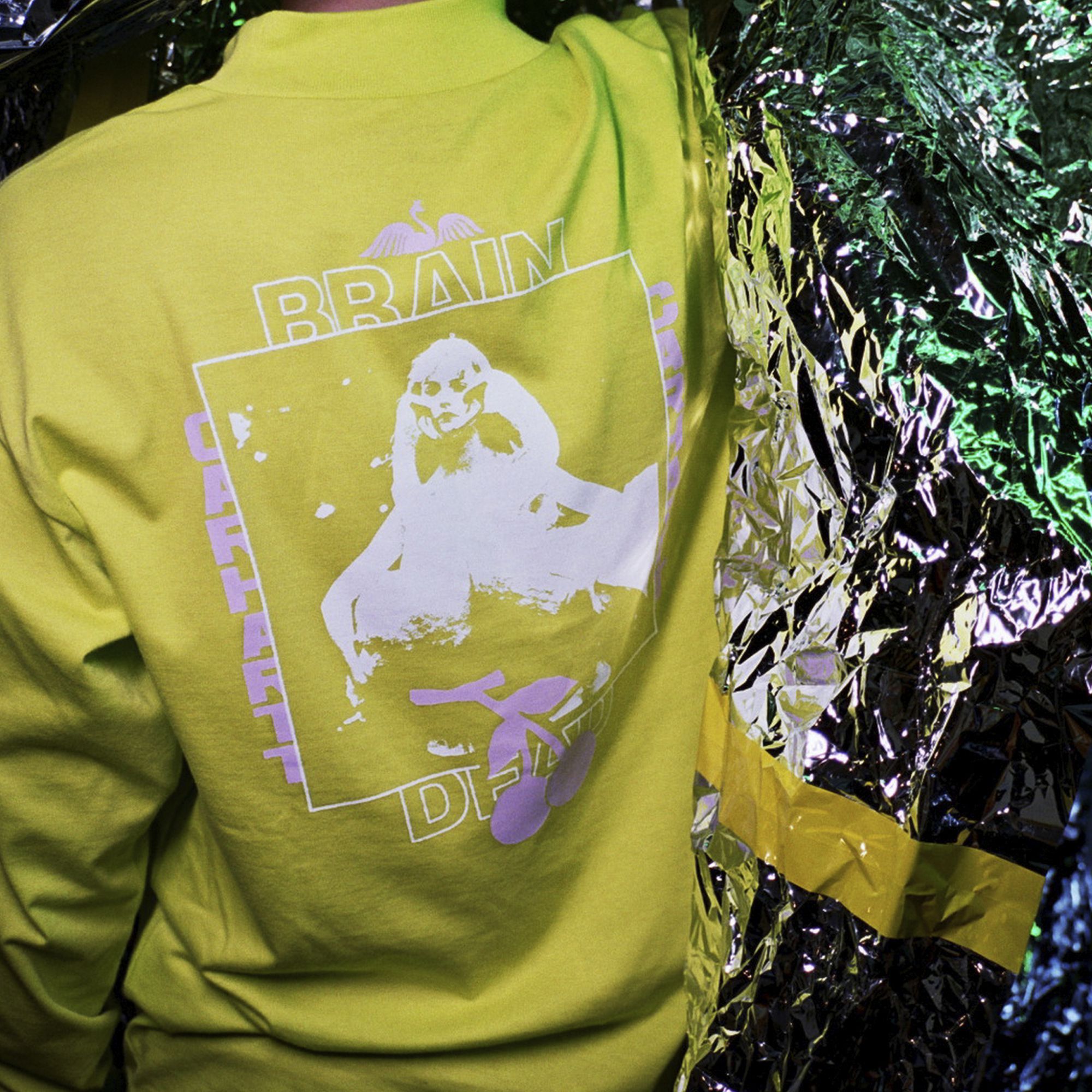 Legendary street brand Carhartt WIP debuts a collaboration with Los Angeles collective BrainDead. Founded by Ed Davis and Kyle Ng the esoteric west coast brand are reworking a selection of Carhartt WIP products incorporating their unique view on post-punk graphics.