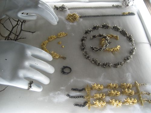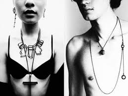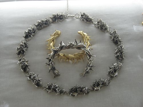 Il suo è un impegno costante con la società e le sue creazioni sono proprio la testimonianza di ciò: una linea essenziale, che può essere maschile e femminile senza alcun problema. Non osa mai colori o materiali eccessivamente vistosi, rimane pulito con forme ereditate dalla geometria, dalla fantasia ed anche dalla religione. E’ un continuo ritorno ai triangoli, croci, fili spinati, pendenti stilizzati e metalli di varie fattezze, da plasmare come meglio si crede e si reputa accostabile alla propria personalità.