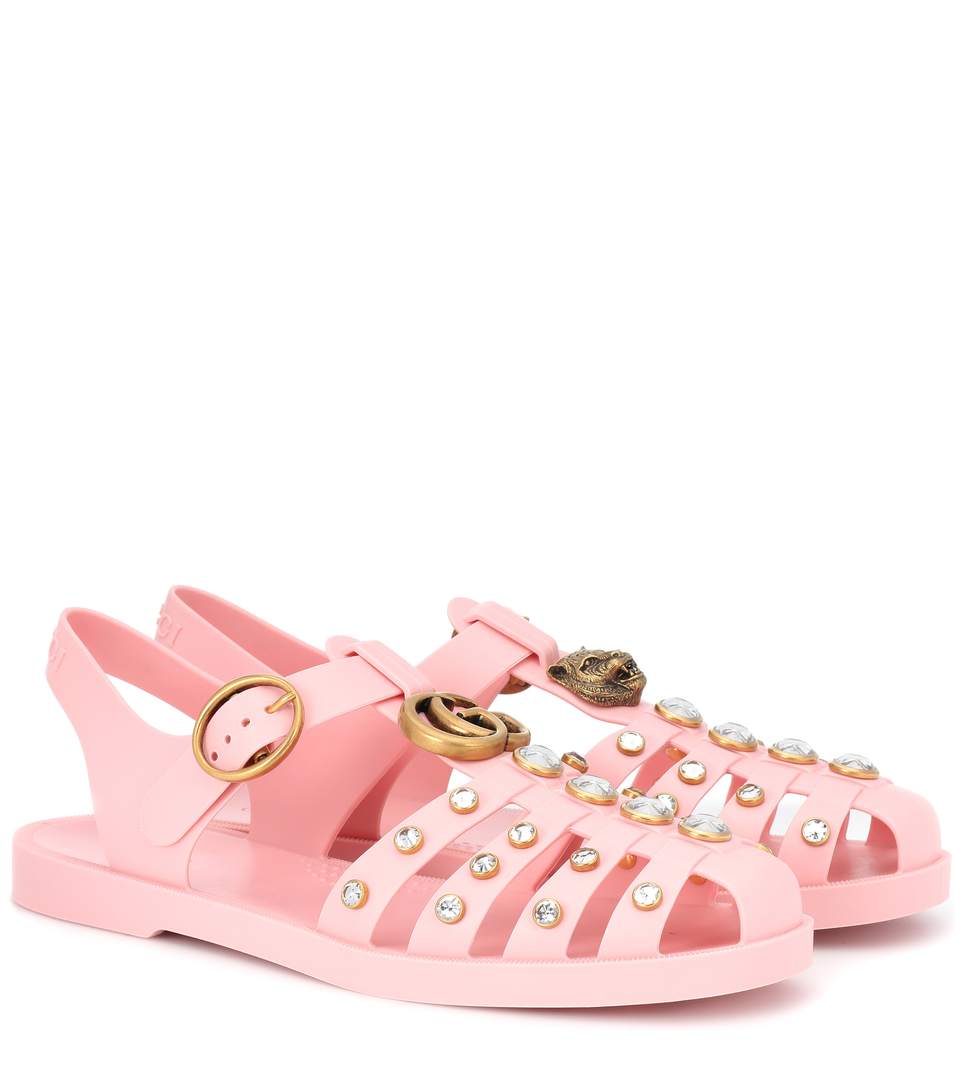 Gucci Crystal Cage Jelly Rubber Sandals, 495€