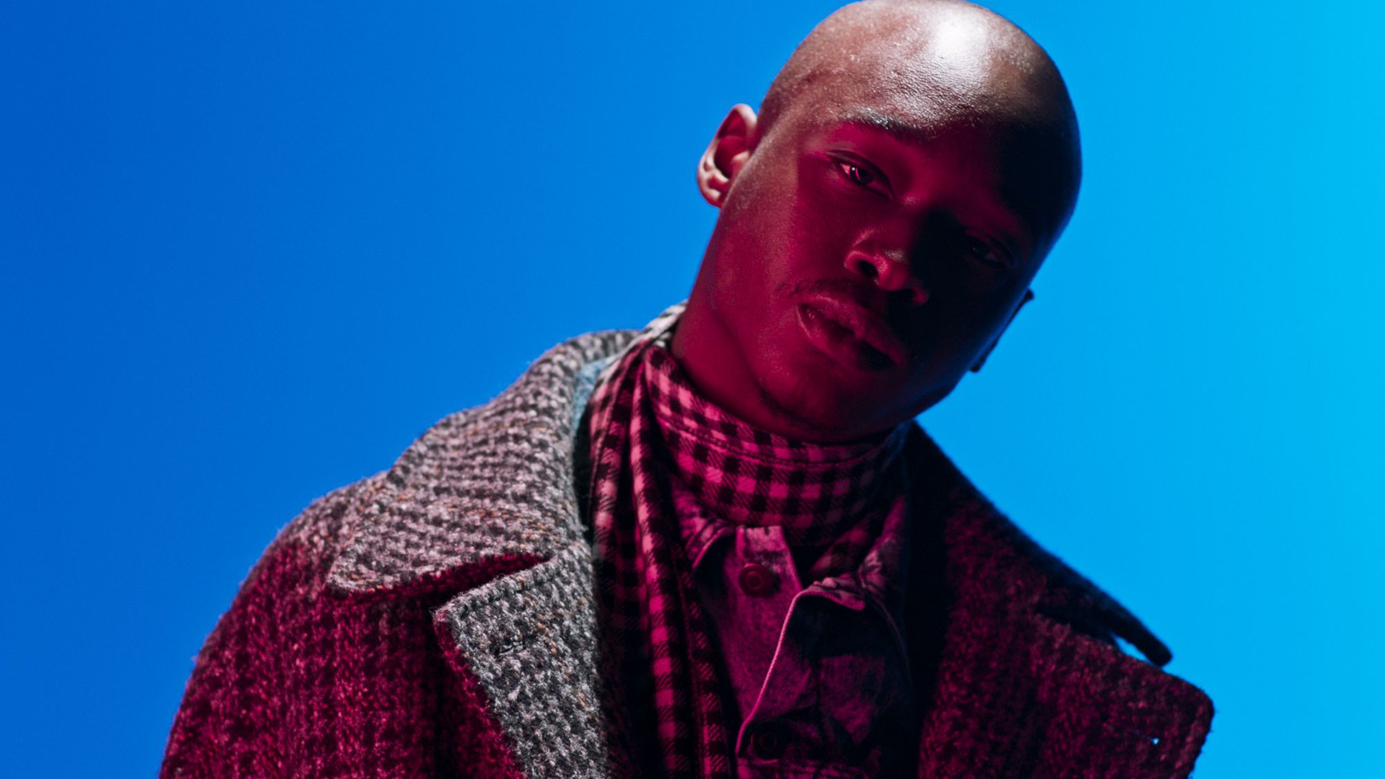 In front of the filmmaker room Austin Lynch and Case Simmons there is Ashton Sanders, the star of Moonlight, dressed with the cool and eco-sustainable garments of the British designer: oversized wool checked coat, camouflage print in recycled fabric, cotton denim organic, regenerated cashmere trousers, recyclable Loop sneakers and hiking boots.