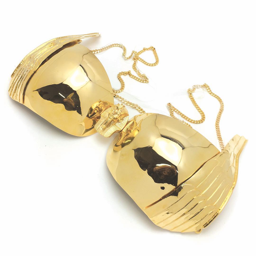Pieces from the Chrishabana brand have been featured in magazines like Vogue, i-D and Dazed&Confused, and have been worn by celebs like Rihanna, Madonna, Lady Gaga, FKA Twigs, Kylie Jenner and SZA. He recently collaborated with Nicki Minaj too. In her visual Ganja Burn, the popstar stuns in a Egyptian inspired, 14k gold plated bikini: Habana worked on a silicone model of Nicki's body in order to create perfectly fitting and tight pieces. The result is unbeliavable.