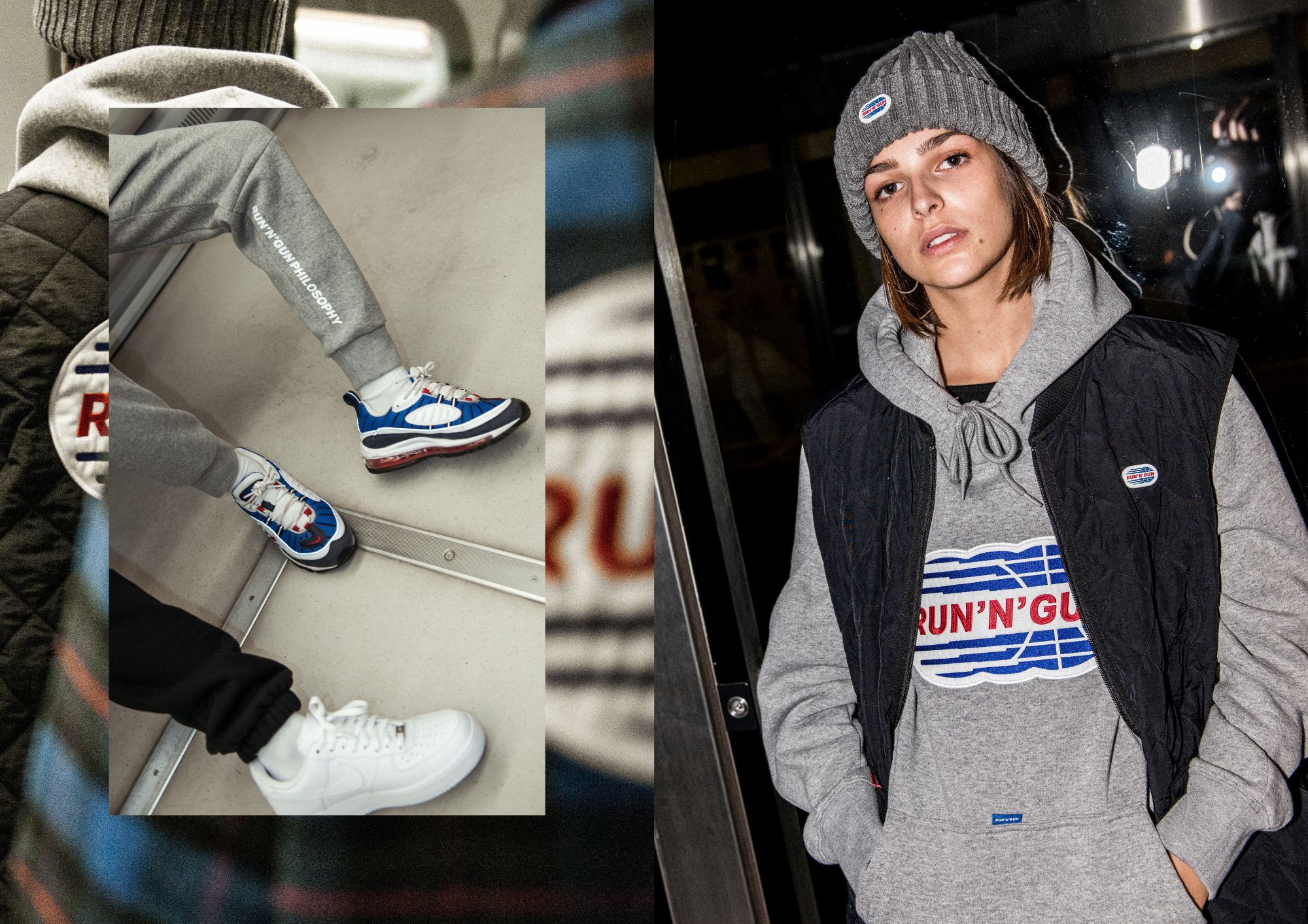 RunNGun Intl ™ faces the cold season with sweatshirts and T-shirts decorated with macro prints, tracksuits in Nylon Crepe, quilted vests, a series of relaxed, easy pieces, always up-to-date, made special by details like the use of reflective piping and 3m Scotchlite ™ prints or Retro Fleece pack with nylon inserts.