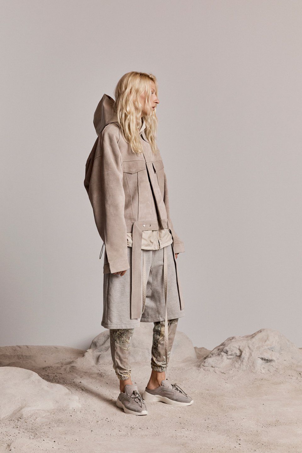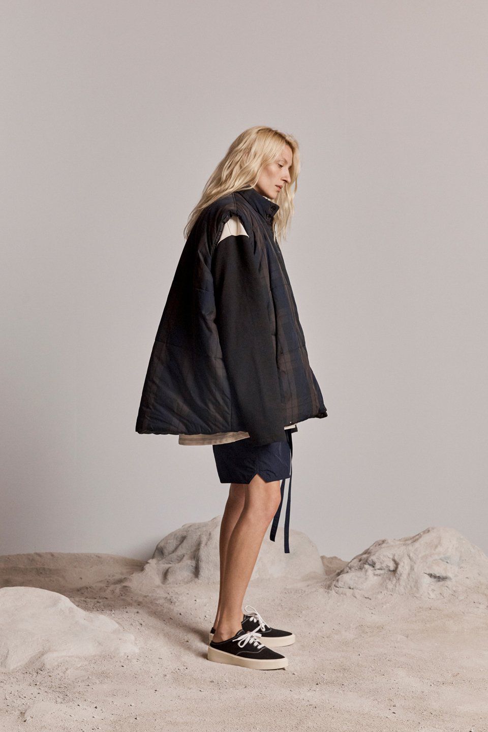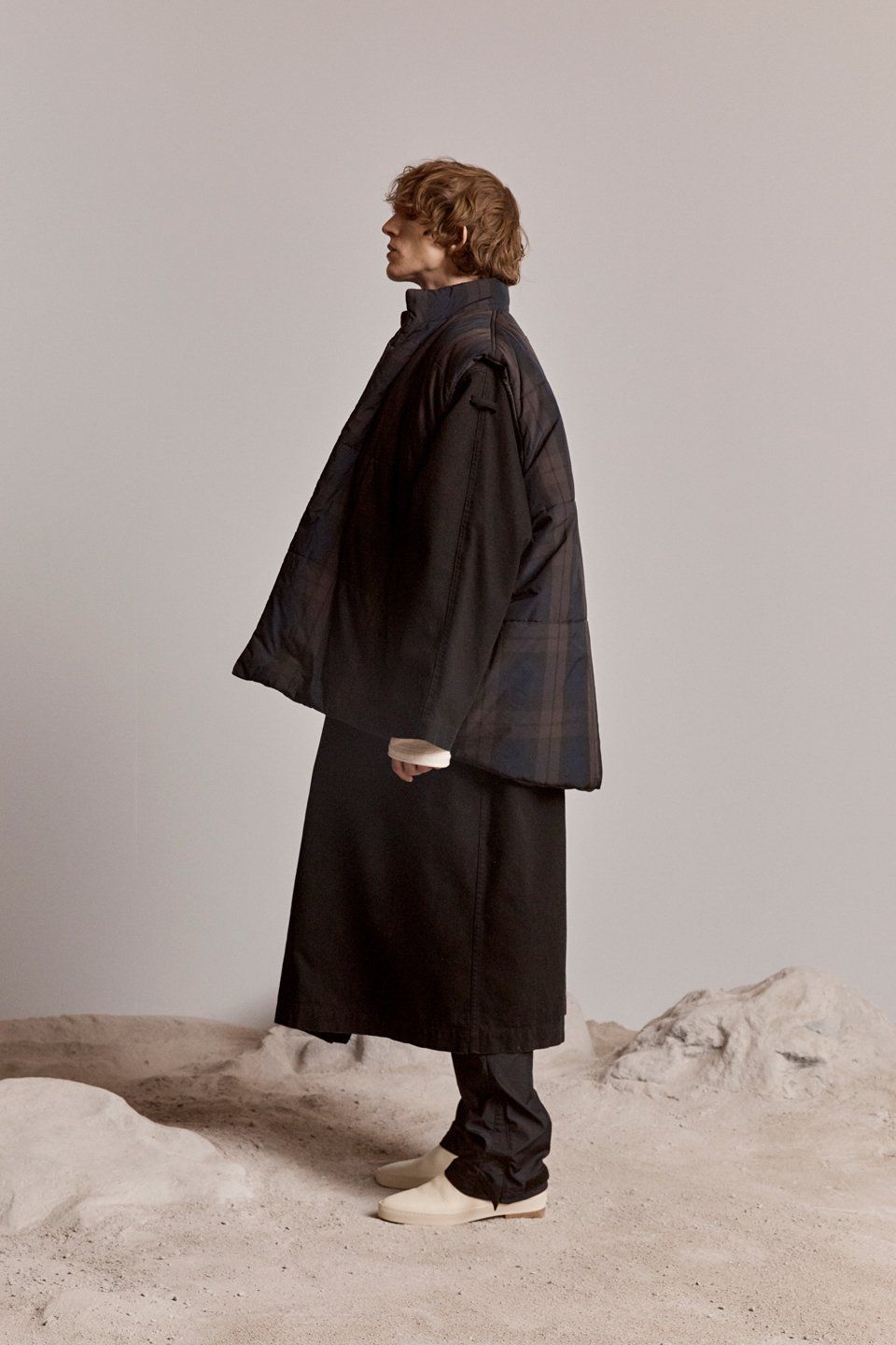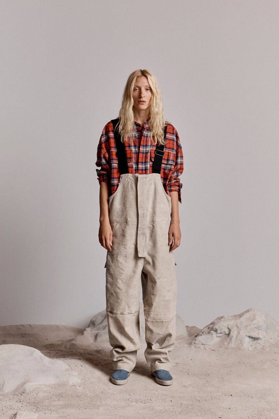 The characteristics of this new proposal for the FW18 are an evolution of those that have made the fortune of the brand: workwear contaminations, tailoring cuts, oversized volumes, quality materials, which, this time, are denim, leather, fleece, wool, cotton and iridescent nylon. The garments, deliberately unisex, have neutral shades, broken by tartan accents; they are stackable allowing a personal, eclectic styling and include huge bomber, boxy tees, hoodies, sports suits, checked shirts, waistcoats, denim jackets, oversized shirts, tapered pants, worker jackets and many other streetwear pieces.
