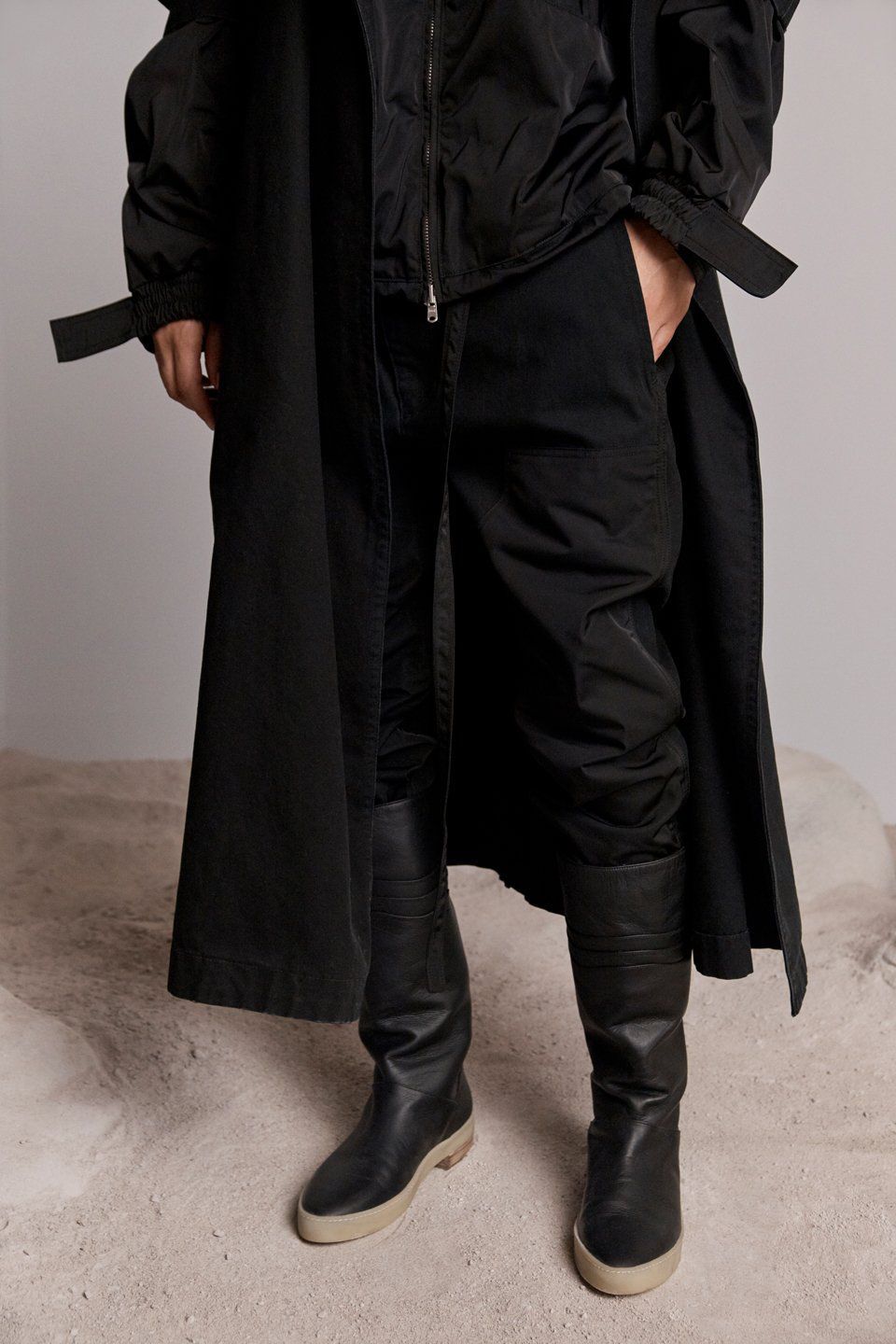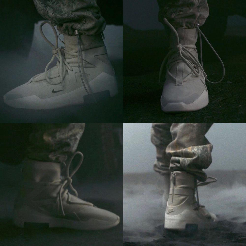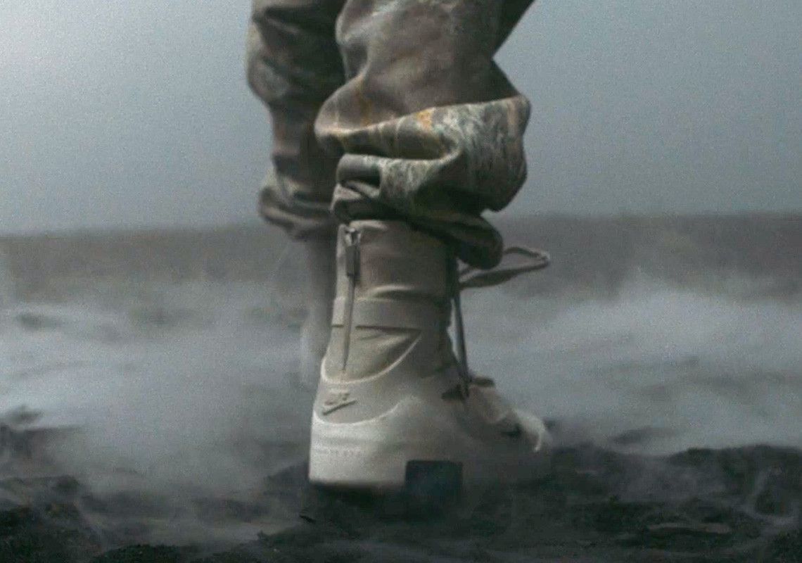 Together with the lookbook of the new creations, Jerry Lorenzo launched a video showing his first shoe in collaboration with Nike. It is a hybrid between sneaker and boot, with a high silhouette and one that seems to be an upper in leather; the laces are attached to a triangular overlay and feature a toggle lace lock. The only visible branding appears in the form of a mini Swoosh logo at the forefoot.