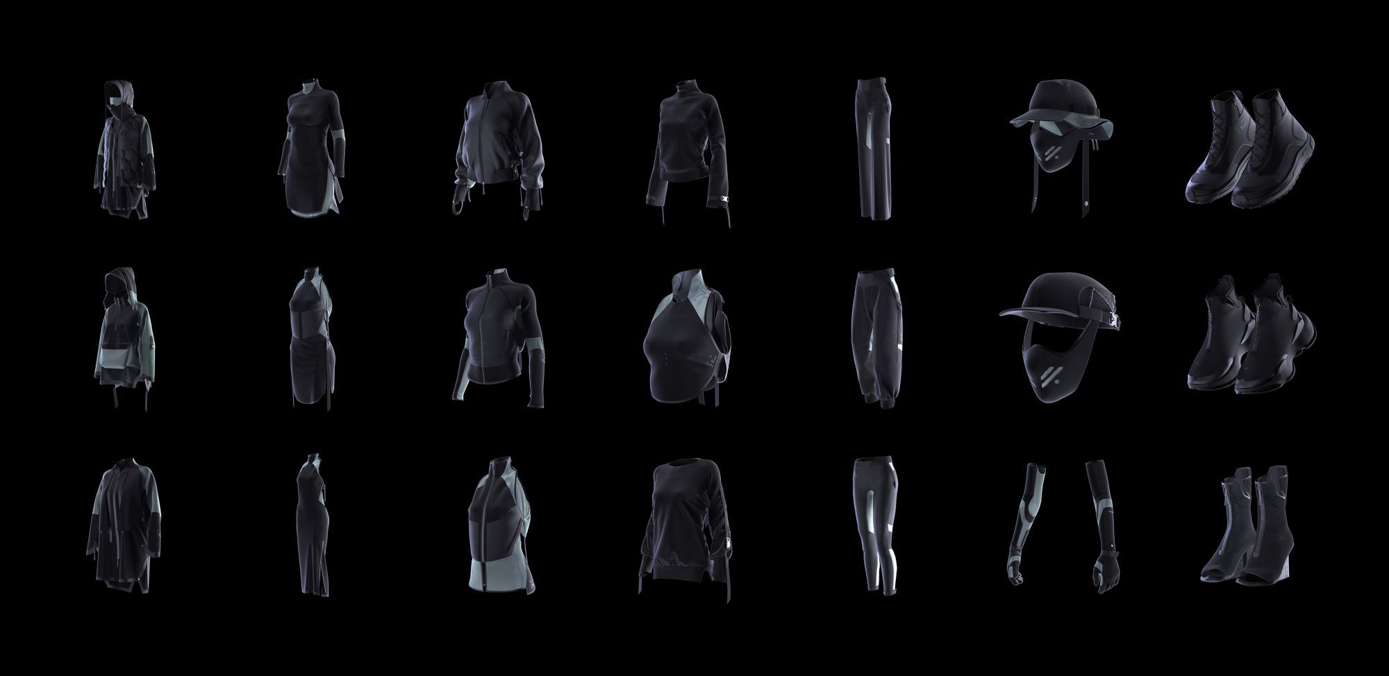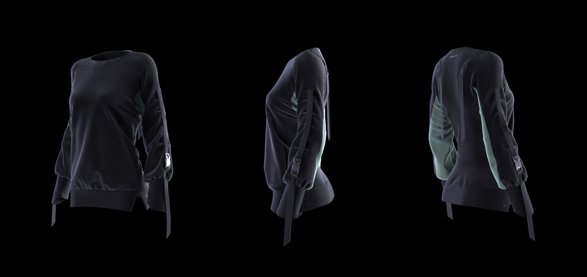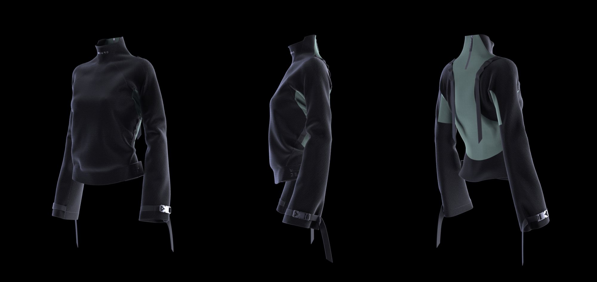 SOLVENTUS 2019 is the product of a year spent pushing the limits of 3D software and engineering. Models were 3D scanned to study their motion and heat maps, which enabled Neuro’s designers to not only obtain each model’s precise measurements but also to design garments directly onto each model’s digital avatar, drawing shapes and selecting materials dependent on data collected from their movements and heat maps. Basing a methodology on that the same 3D file created during the design phase will be used to promote, sell and produce a garment. Setting a precedent to match efficiency with sustainability, customization, and flexibility.