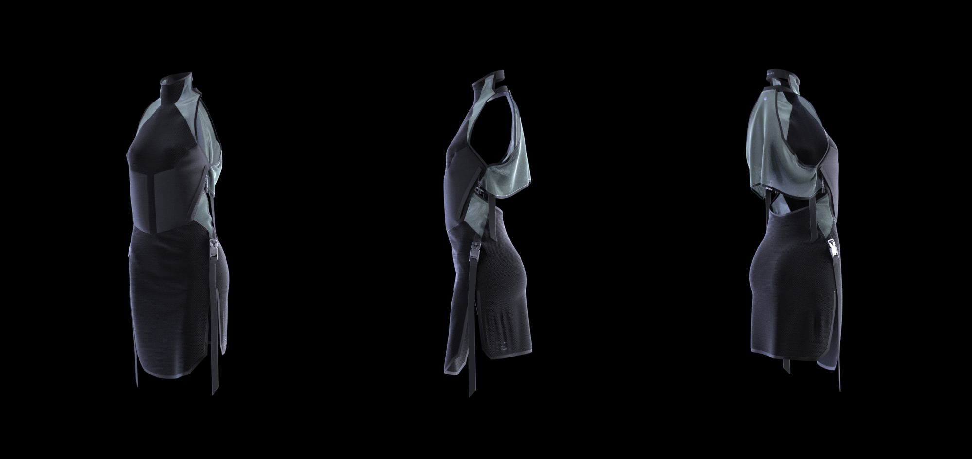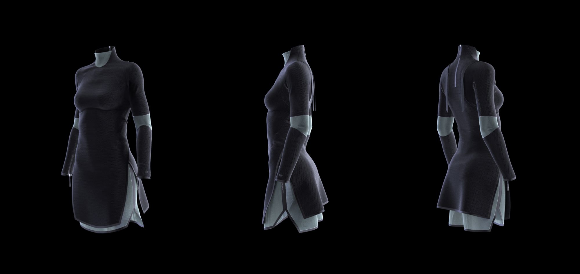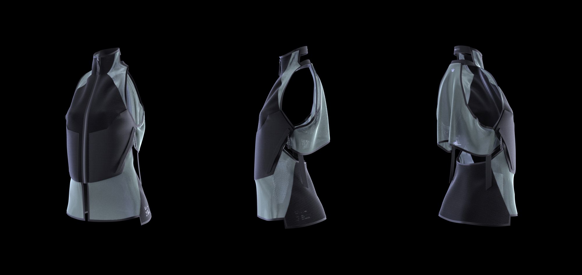 SOLVENTUS 2019 is the product of a year spent pushing the limits of 3D software and engineering. Models were 3D scanned to study their motion and heat maps, which enabled Neuro’s designers to not only obtain each model’s precise measurements but also to design garments directly onto each model’s digital avatar, drawing shapes and selecting materials dependent on data collected from their movements and heat maps. Basing a methodology on that the same 3D file created during the design phase will be used to promote, sell and produce a garment. Setting a precedent to match efficiency with sustainability, customization, and flexibility.