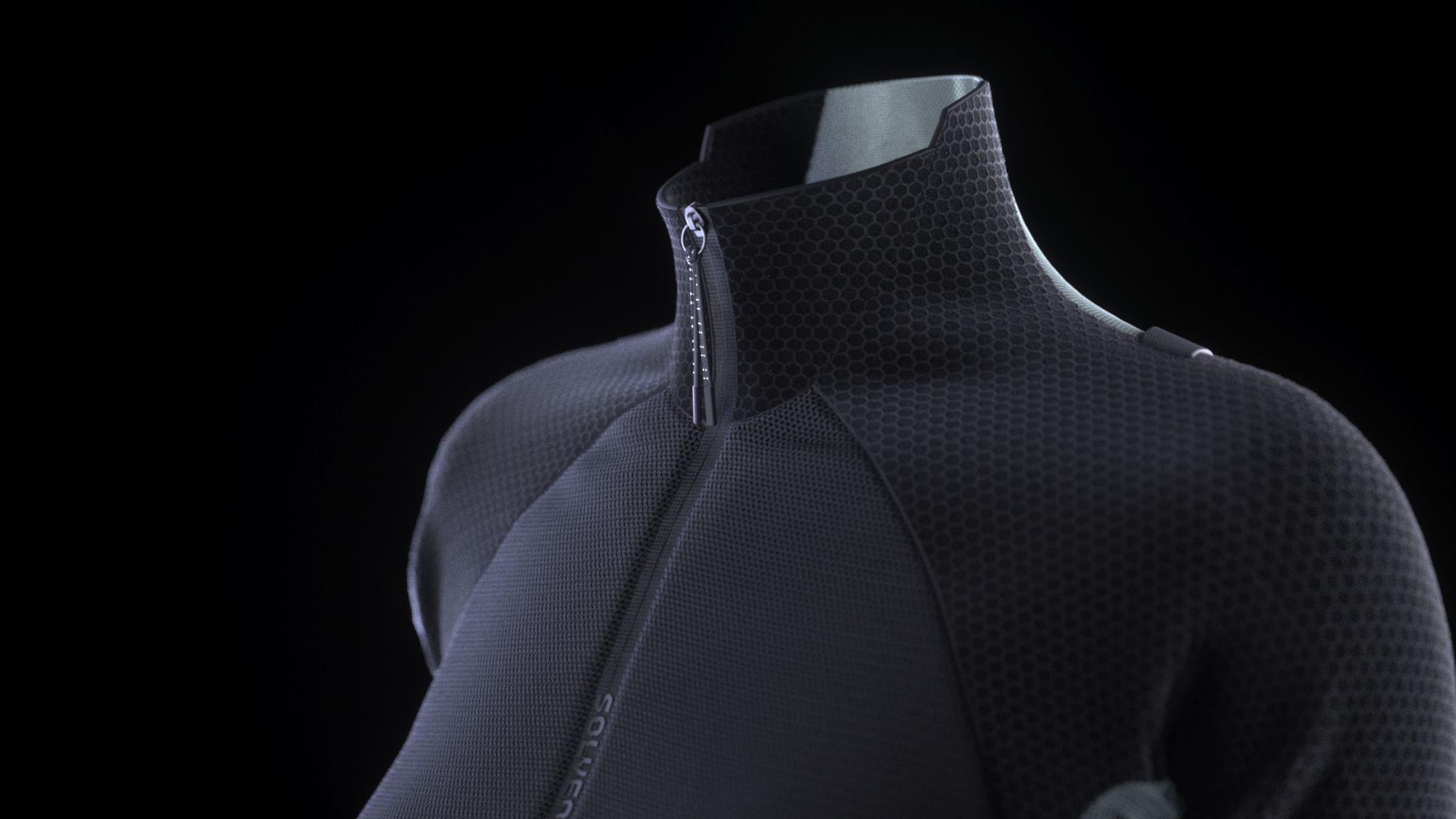 SOLVENTUS 2019’s garments feature recycled fabrics and a color palette that’s almost exclusively shades of jet-black charcoal, with a dash of neo mint. Its stretch and knitwear garments utilize ventilation system to keep heat out and provide flexibility and breathability to optimize motion. For colder conditions, Neuro’s cold-weather fabrics use a cutting-edge yarn designed and stitched to contain body heat and provides warmth. Performance-wear outfitted with the collection’s lightweight 3D printed mesh fabric is feather-light for breathability and durability and is strategically designed to provide comfort where ventilation and movement are crucial.