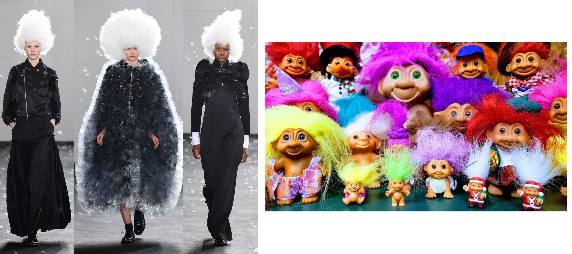 Remember the Magic Trolls Babies that, in the 90s, were inside the San Carlo potato bags? Those ugly things, with hair puffed up, as if the poor toy had put his fingers in the socket. There is even a guy in America, Ray Dyson, who owns more than 1,754 ... Well, it seems that the brand Noir Kei Ninomiya is inspired by these vintage dolls for the hairstyles of his models, a detail that attracts attention and engulfs also the interesting SS19 collection with its combination of technique, organic materials, and tailoring.