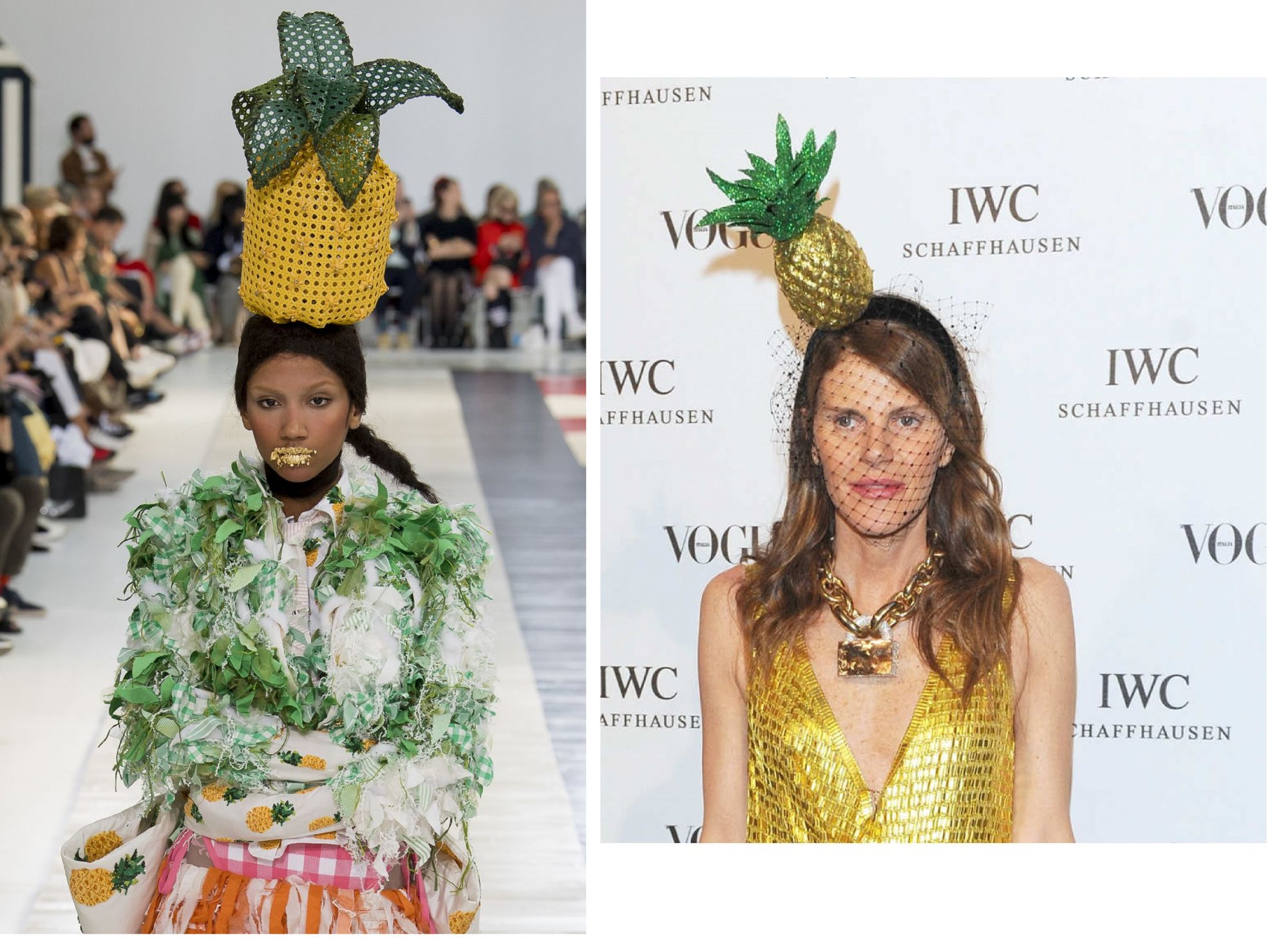 Anna dello Russo is definitely one who knows fashion, bizarre deta, ls and future trends, but would you ever have thought that she would become the muse of Thom Brown? The famous designer presented a collection inspired by a submarine universe populated by fantastic creatures such as mermaids, starfish, sharks, pelicans, jellyfish, but also accessorized with bizarre fruit-themed hats that, as the Diet Prada duo notes, looks like a tribute to the Italian journalist. Who knows what Anna would think of this little tribute in a collection that has raised criticism not for her creativity, but for bringing onto the catwalk models tied and gagged, almost unable to move and talk ... provocation, lack of sensitivity or desire to underline how the figure of the woman is still today relegated to a corner by a male-dominated culture?