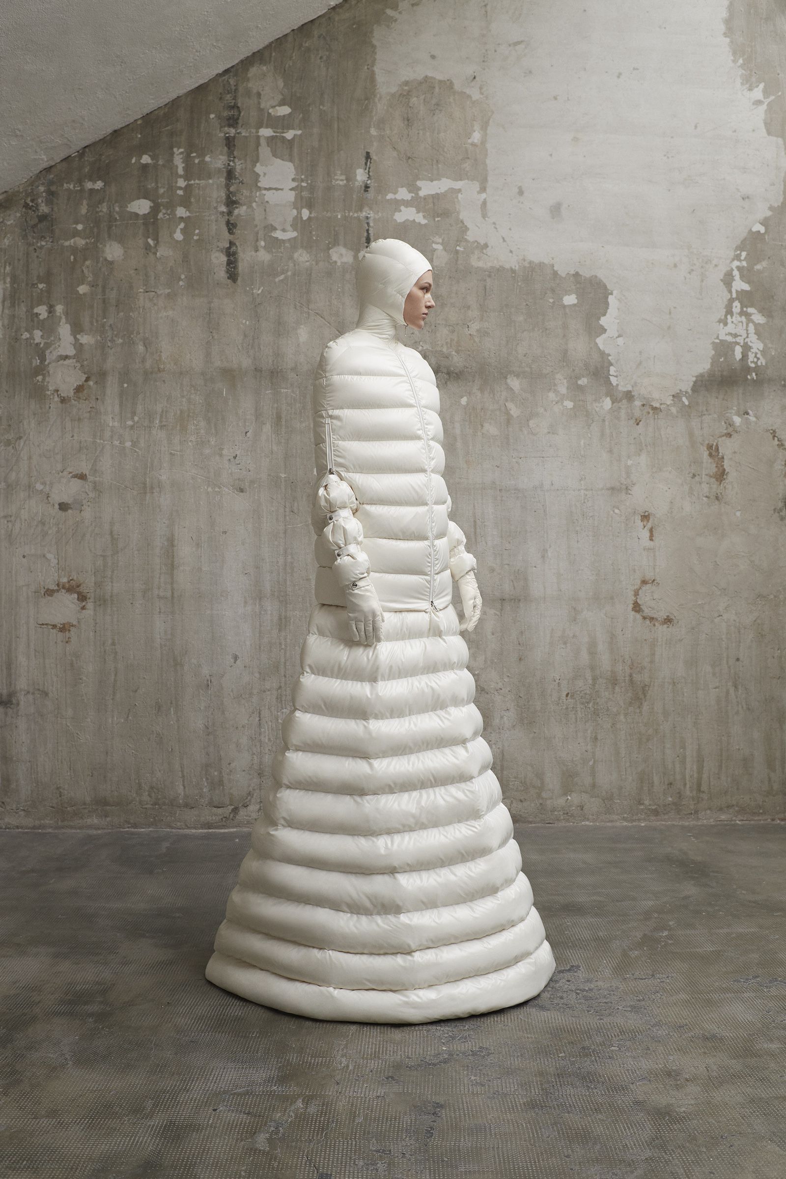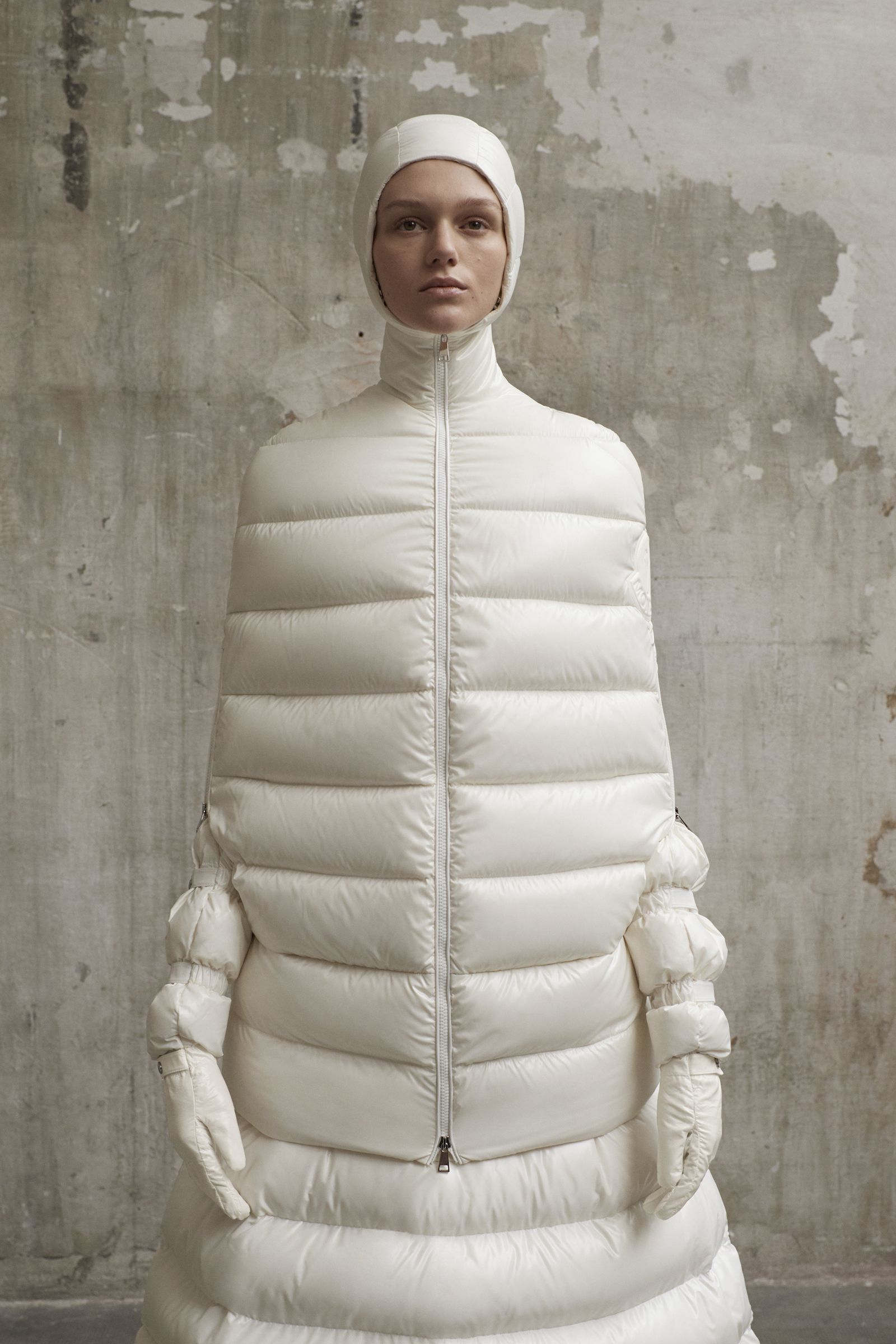 Pierpaolo Piccioli has created graphic shapes that are as mystical as they are futuristic. His Medieval Madonnas are seen through a space-age lense merging form with essence, which for Pierpaolo is the very definition of purity. Stripping back Moncler’s classic use of duvet to its bare essence. Silhouettes ooze a couture feel while keeping the sense of functionality which is a Moncler pillar.