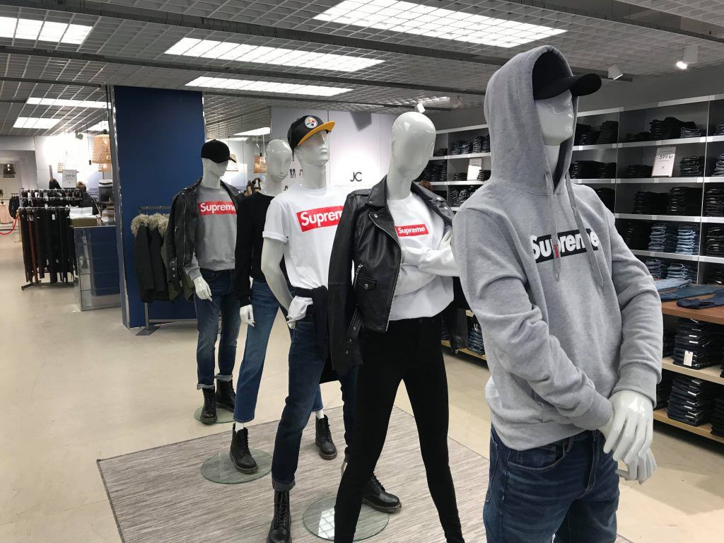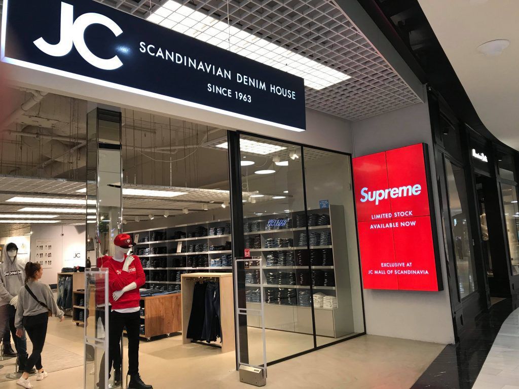 It was thus with a bit of a surprise when a few weeks ago a new large sign was set up in the Mall of Scandinavia advertising that JC Jeans now sells Supreme clothing in Limited stock, exclusively at Mall of Scandinavia. This raised questions for a few people in the know, who are well aware of that Supreme New York is only sold through their flagship stores or own online shop. When investigating things closer it has been revealed that JC Jeans in the Mall of Scandinavia is in fact selling the Supreme Spain brand. JC Jeans have yet to make a statement, but anonymous sources have told that this seems to be a private initiative taken on by the local manager of the JC Jeans store within the mall.