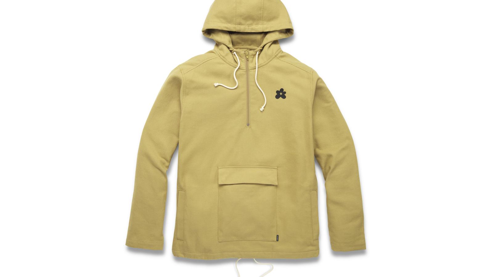 This aesthetic also carries over to the capsule’s accompanying apparel, an open-weave fabric anorak in Curry and Natural.