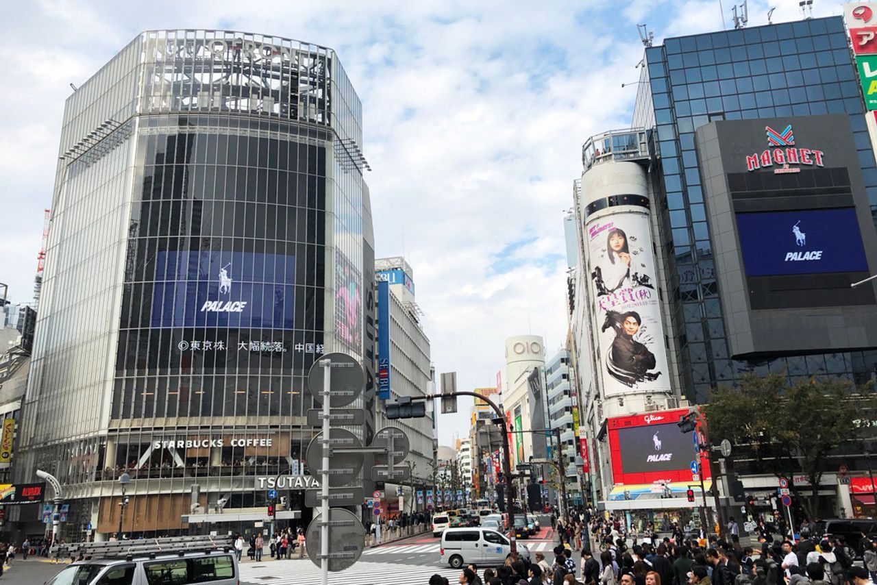 Three giant billboards have popped up in Tokyo, featuring a man playing polo, symbol of the American brand, with underneath the logo of the English skate brand, on a blue navy background.