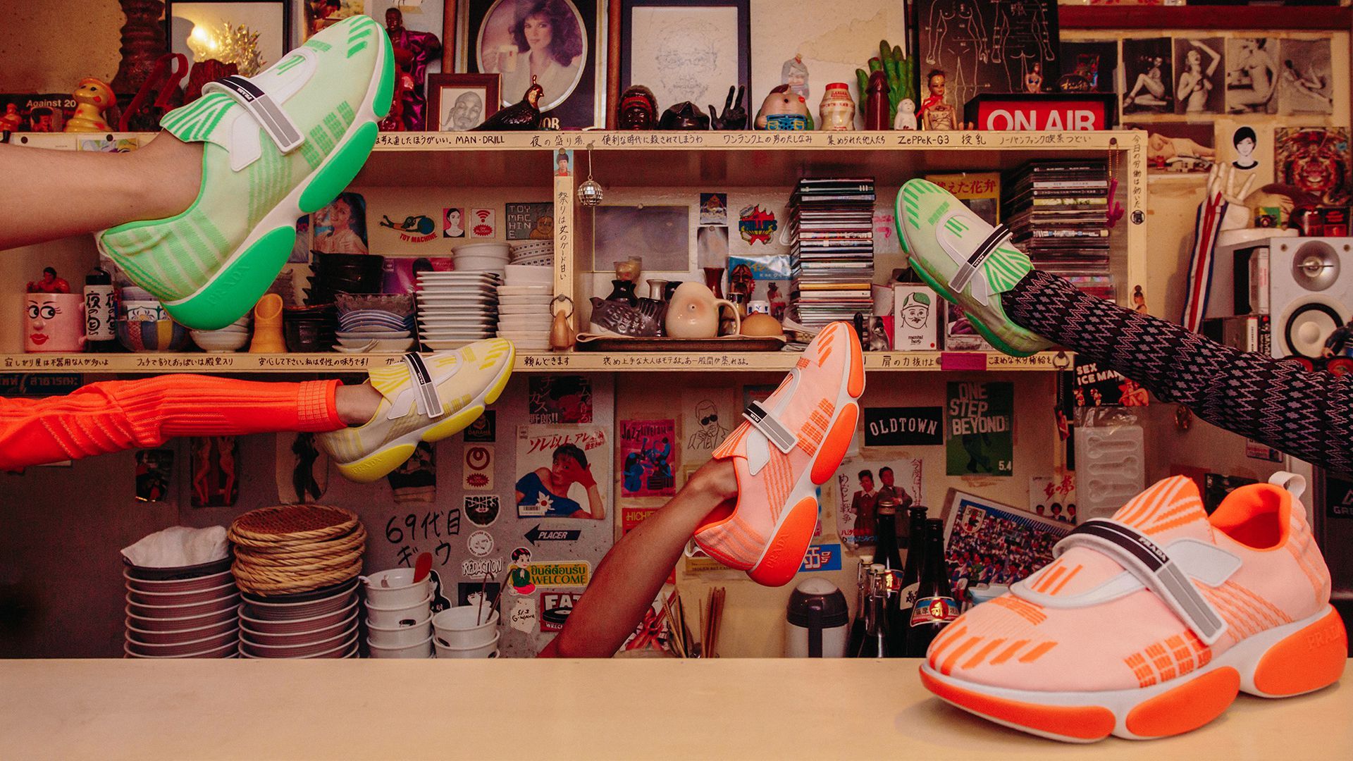 The Intimate City is set in Fukuoka, Japan where, within intimate and private spaces, Kenta Nakamura immortalizes a group of young friends with photos and spontaneous shots. Symbols of individuality in a big city, the Cloudbust sneakers take the focus with their fluorescent colors becoming an integral part of the group itself.