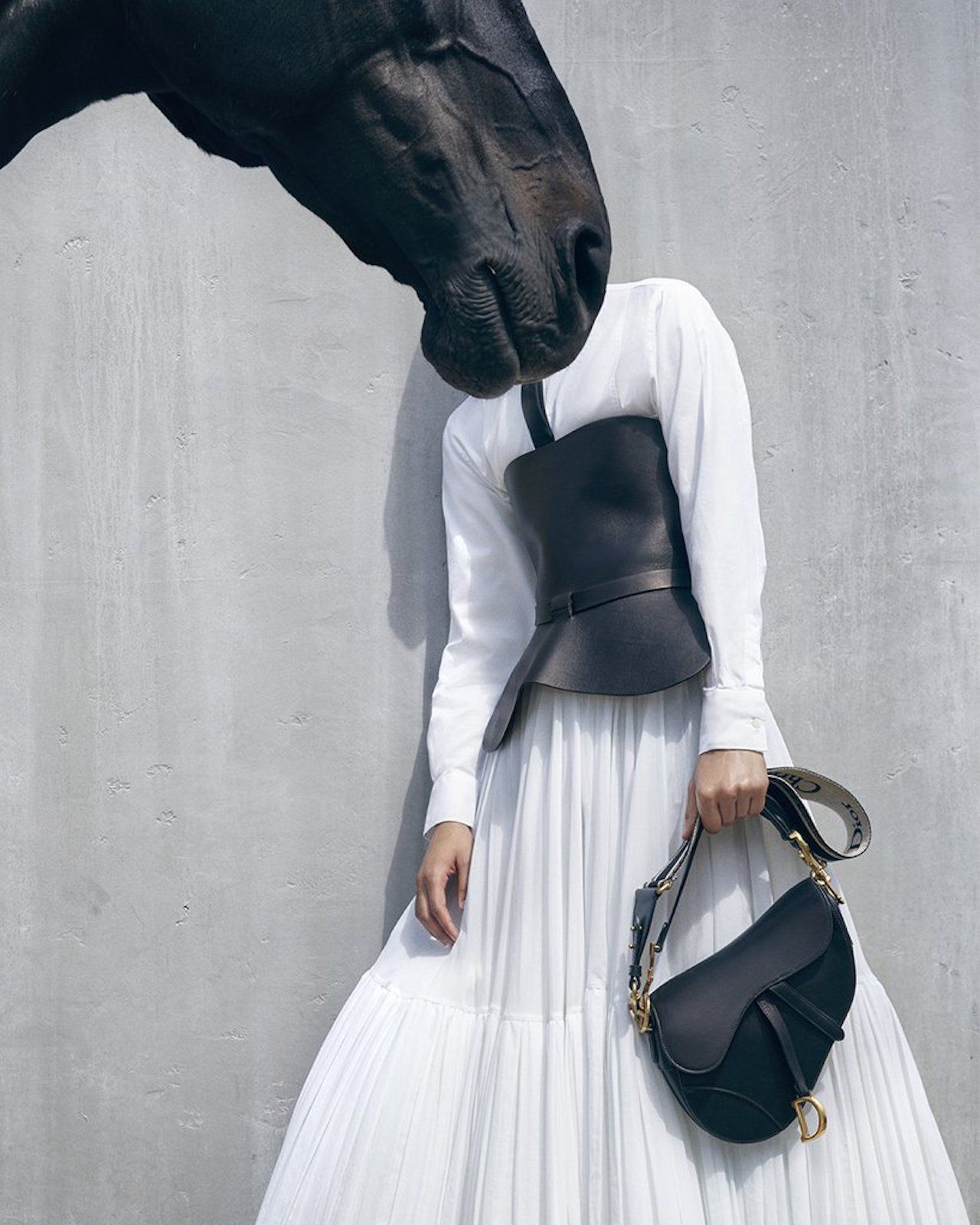 Over the last few years it is evident the return of the country aesthetic, emblematic in the spread of the country boots, which can explain the choices adopted in the last year for many advertising campaigns, set in a ranch - as in the case of the shots of the Kardashian sisters for Calvin Klein - but also in prairies and in other wild landscapes, representative of that world. For some fashion houses, the horse is the symbol of the brand, a tradition to pursue, such as Hermès, a Maison born for the production of saddles and equestrian equipment. In some cases, the horse is the logo, for example, Burberry, with a knight riding the animal with a banner, a medieval version. Finally, there are those who adopt it as a motif to honor their founder, as happens with Dior, in fact, we know the passion that Monsieur Dior had for these animals. In the latest Cruise Collection 2019 designed by the Artistic Director Maria Grazia Chiuri, the models perform in what was literally a rodeo, with a strong Hispanic atmosphere. In the advertising campaign is instead Jennifer Lawrence to pose with a black horse, which is hidden between white walls, provoking a sense of surreal calm and a series of beautiful shots.