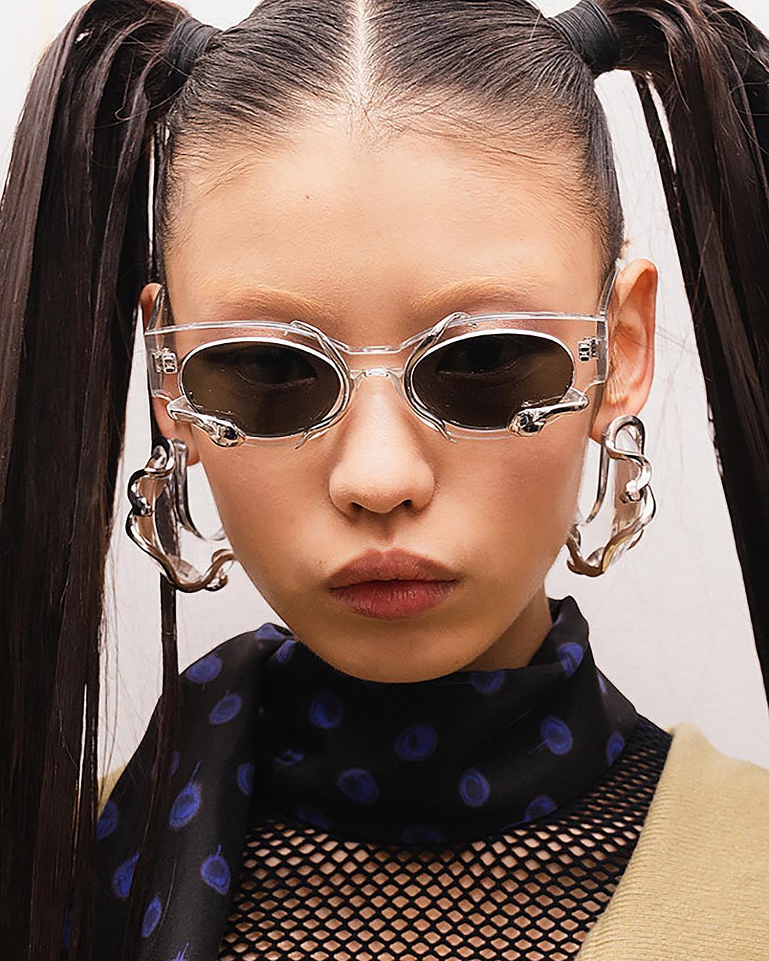 The long and smooth tails have never been so "right": shiny and with a central line, they are the most commented on the web, symbols of innocence but sexy and strong. The punk girl presented on the catwalk wears perforated tee, leather on skin, over denim shirts and black motorcycle gloves.