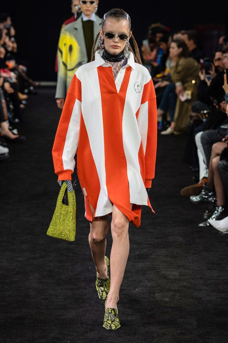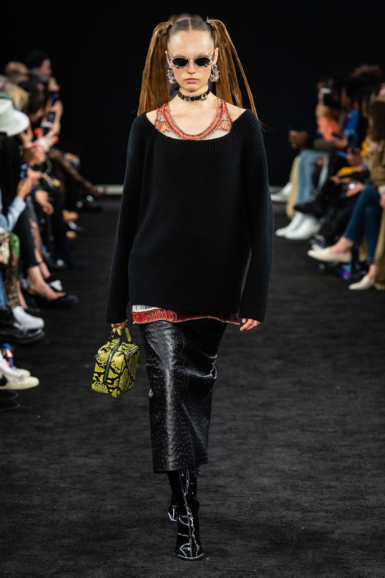 What we admired on the catwalk is another story. Wang, in Collection 2, shows the other side of the brand, the one that makes the black its greatest ally, the models seem to have come out from the saga of Matrix, and so the woman puts aside her red pompons and dresses the man garments while, with a firm step, she shouts revolution. Everything is hypnotic. The undeniable reference to the 80s-90s makes us understand more and more how the past is the fashion of the present, and so, we have to start to consider again jackets with straps, midi combined with boots, high waist and white socks.