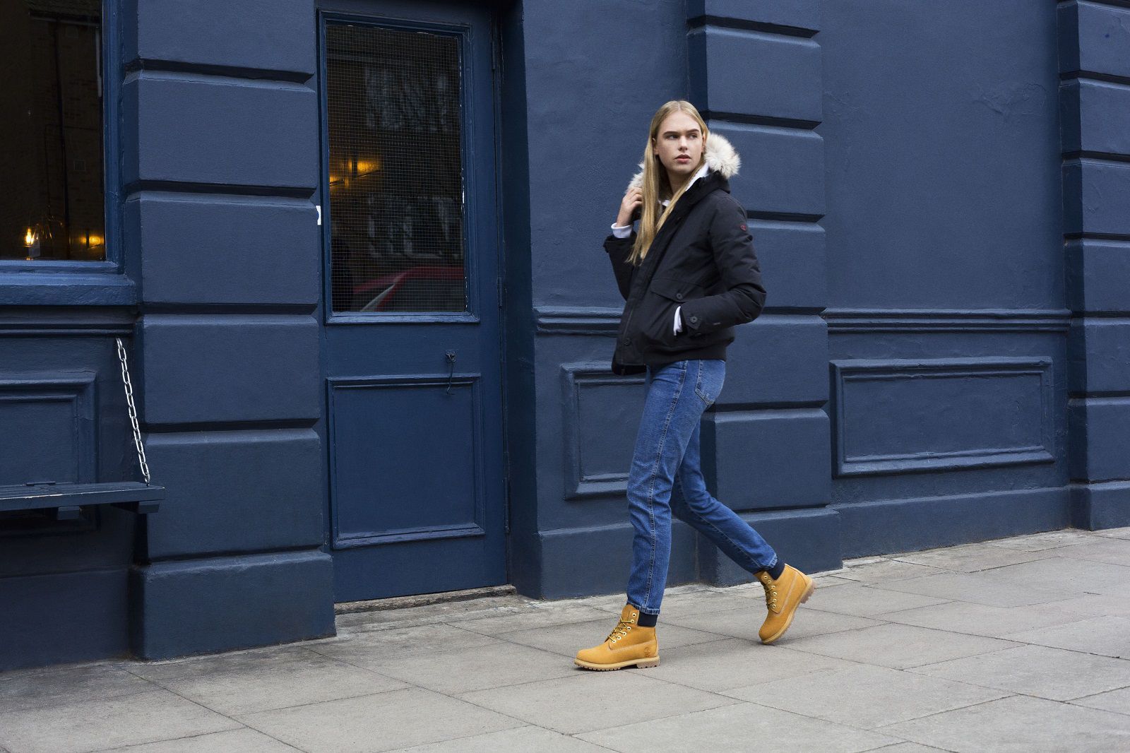 Made of cotton blend fabric, with anatomic goose down padding and hood with detachable faux fur trim, the parka is already available in shops and on the Timberland web shop, both in the short and longer version, offered in black both for women than for men. For the latter there is also the possibility to buy the jacket in navy, forest green, gunmetal gray and ice gray, combined with red or turquoise contrasting interiors.