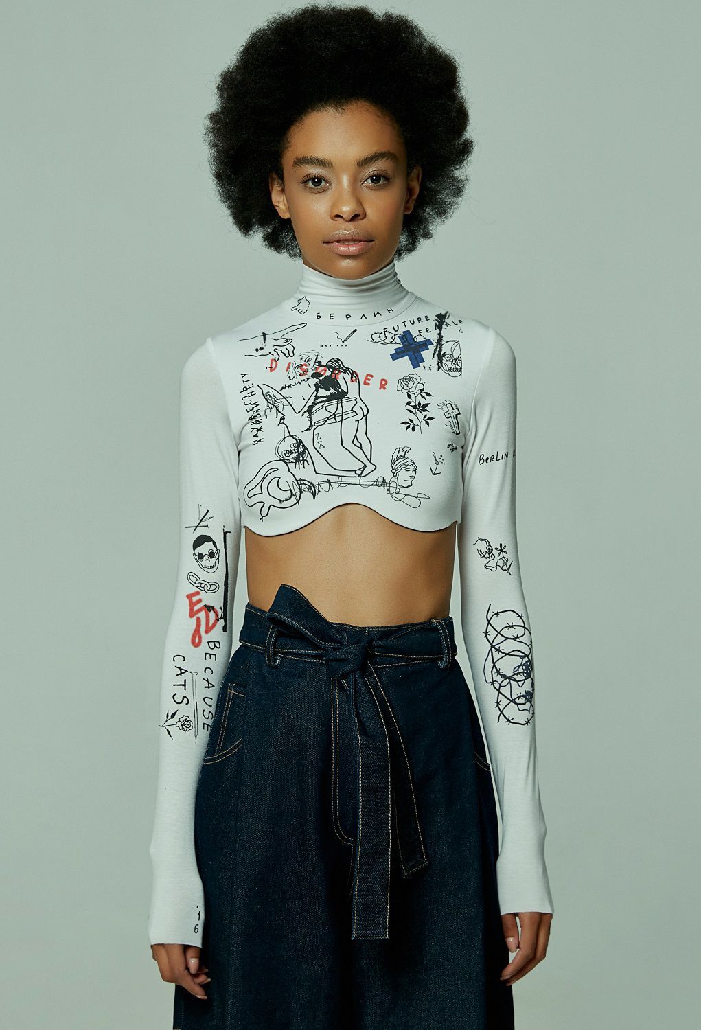 The creativity of TTSWTRS does not end, but rather returns more expressive with the FW19. Among the seasonal proposals that include silk dresses, voluminous sweatshirts, trench coats, outerwear, denim, sweaters, tops and corsets, there is no shortage of see through pieces and garments decorated with tattoos that mimic bare skin. Contemporary, personal, TTSWTRS seems to hide a fragility that conquers because it is never synonymous of weakness.