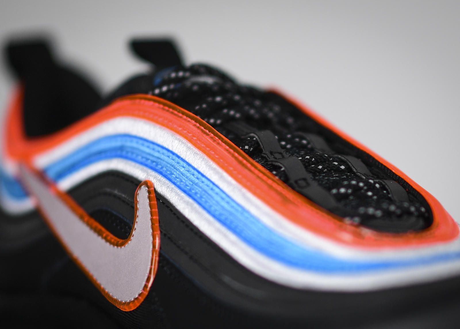 Nike Air Max 97 Neon Seoul is inspired by his city's neon signs, complete with a matte black body, vibrant colors and contours inspired by the Taaeguk symbol on Seoul's flag.