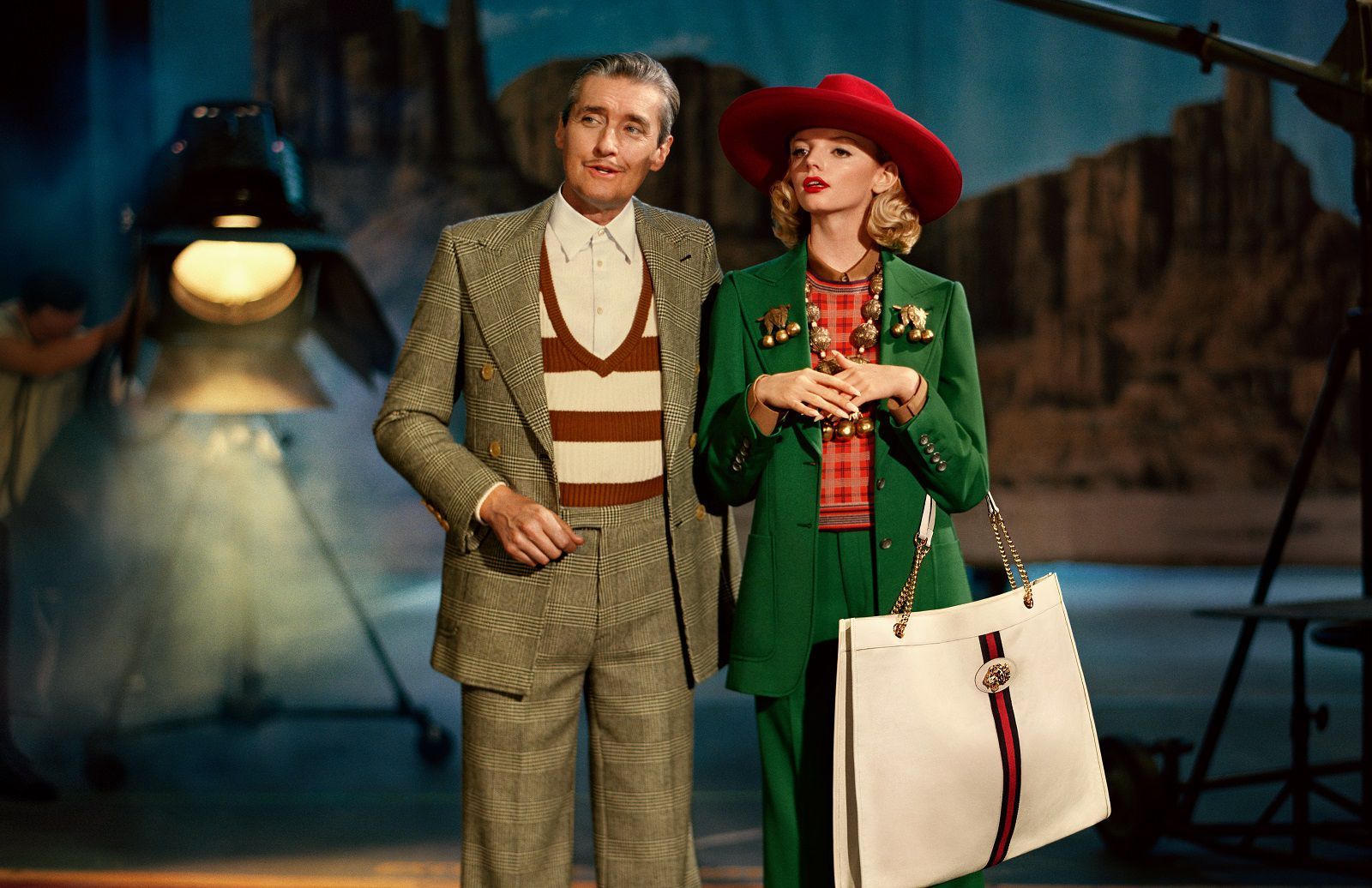 There is something in the aesthetics of Michele, a world full of cultured and pop references, different styles and visions that enchant, which leaves you breathless. This campaign is no exception. Each sequence or shot catches the eye, transporting us to a parallel universe in which style and glamor reign supreme. All without forgetting a touch of irony. The photos of the advertisement, in fact, are accompanied by a small film with the soundtrack of There's No Business Like Show Business, the piece of Irving Berlin composed for the musical Anna take the shotgun. This additional tribute by Gucci to the popular 1950s genre shows the show on the stage, but also fictitious "behind the scenes" of the set, revealing a glimpse of the eclectic cast.
