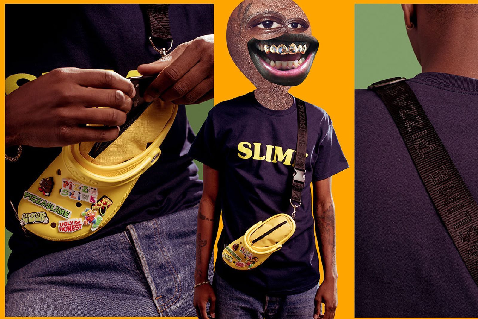 The idea is simple: take two accessories once considered ugly, out of fashion and in recent years have become controversial must-haves, merge them and give life to a new hybrid. It must be more or less this the reasoning made by the brand of alternative streetwear Pizzaslime that, in collaboration with Crocs, has joined the famous rubber clogs with a waist bag, creating a Crocsbody. Available in a limited edition of 50 pieces, in black and yellow, the new object is basically a Crocs to which pockets, zips and a series of pins with ironic lettering such as Ugly but honest or Loser have been added. The cost? $300.