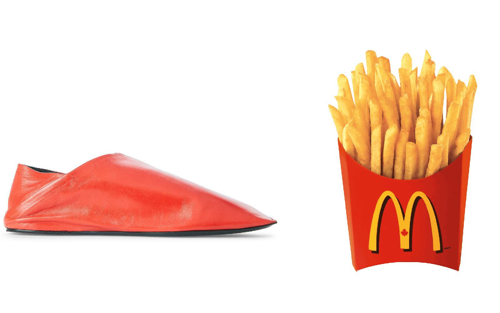 Since Demna Gvasalia has become creative director of Balenciaga, she has accustomed us to see famous items, but usually considered not very cool, transformed into must-haves that the most avid fashionistas are competing for. It happened with the Crocs platform and, above all, with the much-discussed reinterpretation of Ikea's Frakta bag. Someone has noticed that even in the FW18 collection there is an accessory strongly inspired by a decidedly popular product that has nothing to do with the world of luxury brands. This is a pair of red leather mules with a square point sold at $ 740 so much like McDonald's fries cardboard that it has become viral on social media.