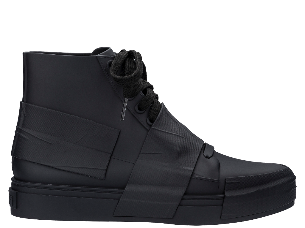 Fashion and art live in symbiosis, a mix in which new ideas and interesting projects constantly born. The last one sees Melissa and Andrea Sata as protagonists. The eclectic artist will create a special artistic performance and will costumizes with his Plus Orbs, his famous circles, 12 pairs of Melissa Crew total black sneakers. The new high-necked shoes characterized by colored bands with a 90s touch, will thus become the unpublished canvas on which Sata will pour his imagination and artistic vision with spray cans.