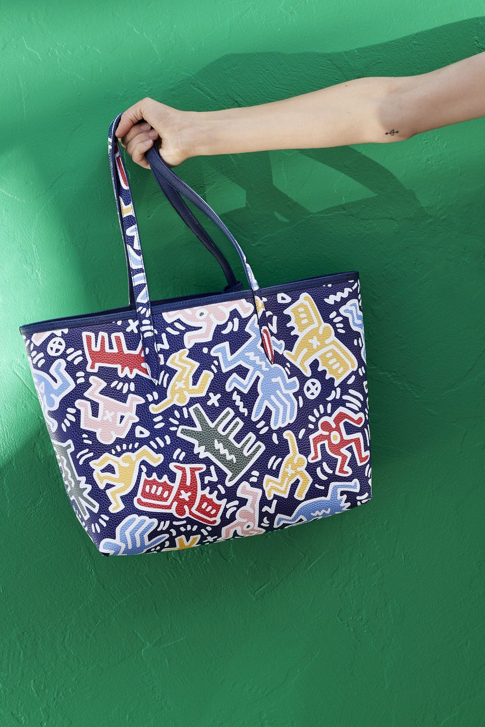 His famous animated figures, in the color or negative version, but also Barking Dog and Heart, multiplied and became all-over prints, popping up everywhere: on polo shirts, T-shirts, shirts, sweatshirts, dresses and swimsuits, on the lining of a bomber, a sneaker or a reversible tote. The result is a joyful celebration of street art with an eighties mood. The Keith Haring X Lacoste collection will be available starting March 27 on www.lacoste.com and in a selection of the brand's stores