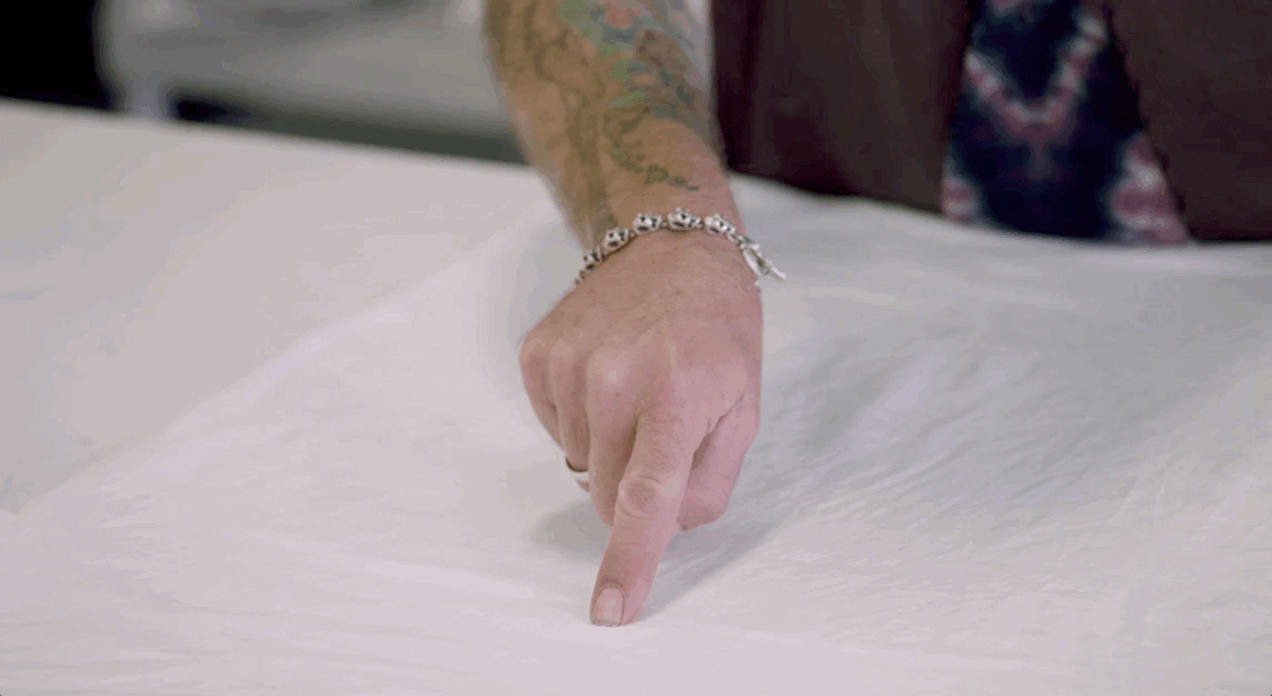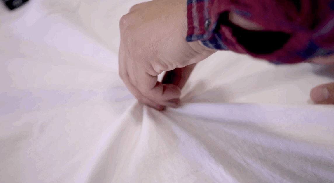 3- Lay the shirt on a work surface. Choose the point from which you will want to start the spiral and start rolling the tee all around that point.