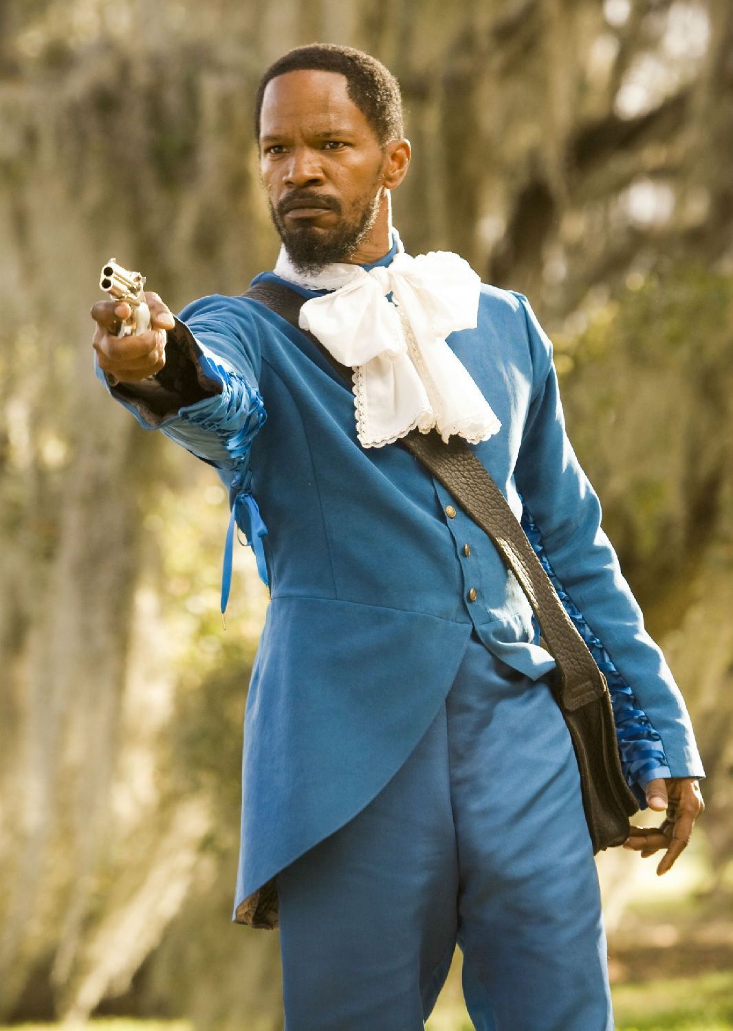 Among the many wonderful costumes present in the films of Tarantino, who can forget the blue valet style suit worn by Jamie Foxx? The inspiration for that outfit comes from Blue Boy, an oil painting by the English painter Thomas Gainsborough from 1770.